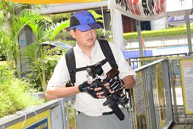 ![]() 这名帮凶用摄影机对法轮功学员拍摄。 |