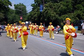 罗德岛州国庆游行 法轮功队伍受欢迎(图)