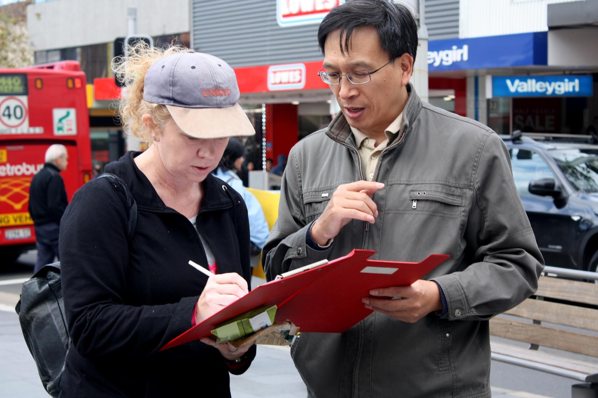 活动地点处于繁华闹市,过往行人中不少是当地的主流社会人士和来自世界各地的旅游者。他们有的签名制止中共对法轮功学员的迫害、有的拿取真相资料,有的询问真相,有的声明退党,还有不少人拍照摄影。其中不乏当地华人。