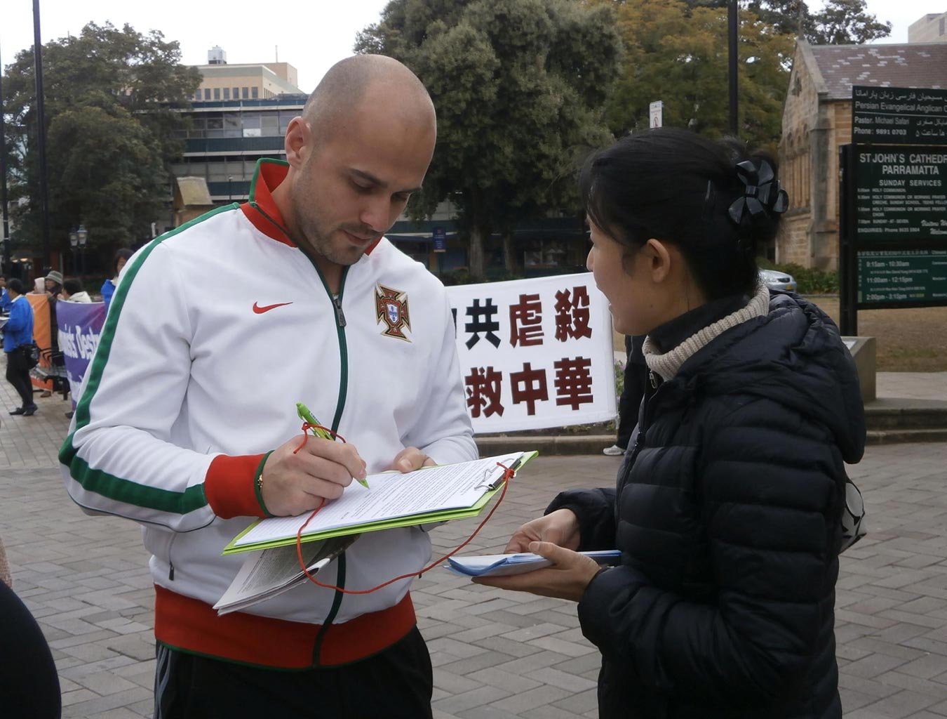 路人签名声援法轮功反迫害