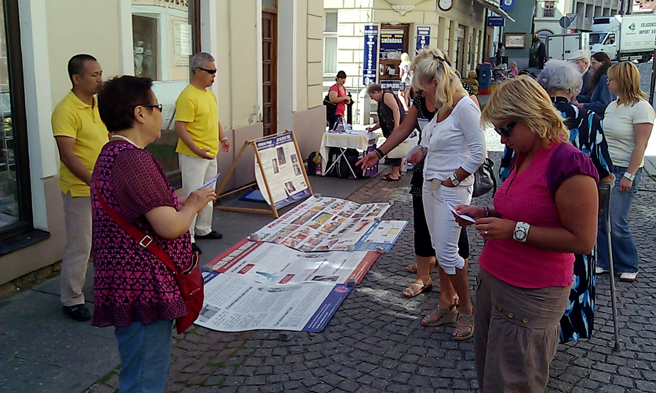 ![]() 在普希布拉姆市中心,人们震惊于法轮功学员揭示的迫害真相 |