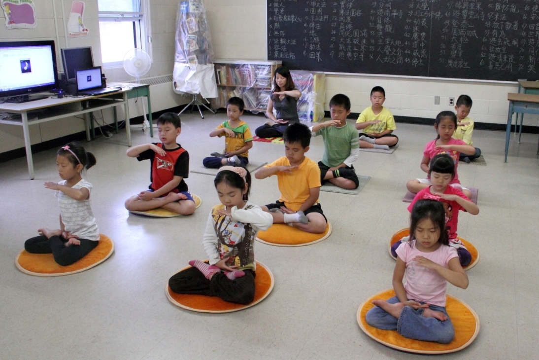 孩子们每天炼功跟大班的时间一样,他们也能坚持。四岁的艾伦(Allen)在家很受宠,到了这个环境后,开始不懂得怎么去跟别人分享,也不肯守规矩,什么都是“我要这样,我不要那样”,都是以自己为主。后来经过学法,背《论语》、背《洪吟》,他就慢慢改了,孩子们也主动去跟他玩了。
