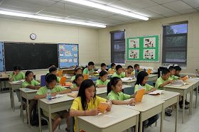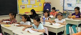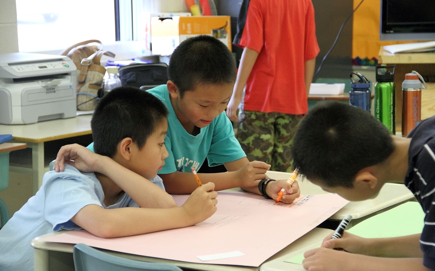 ![]() 多伦多明慧学校夏令营里,孩子们合作完成项目 |
