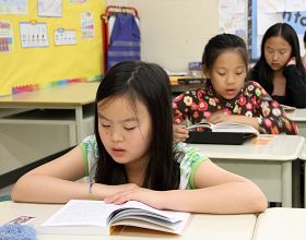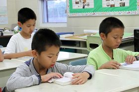 今年九岁的豆豆,去年从韩国跟父母来到多伦多,今年第一次参加了明慧学校。