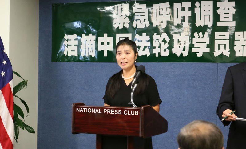 美国华盛顿DC法轮大法学会发言人吴女士在新闻发布会上呼吁国际社会、各国政府和媒体调查活体摘取法轮功学员器官并贩卖尸体的罪恶,同时要求中共开放所有劳教所、监狱及相关设施,让国际独立调查团进驻中国了解真相。