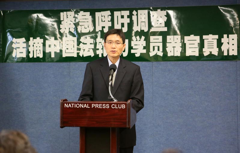 华盛顿DC法轮大法学会在美国国家记者俱乐部召开新闻记者会,呼吁调查中共活摘法轮功学员器官并贩卖尸体的罪恶
