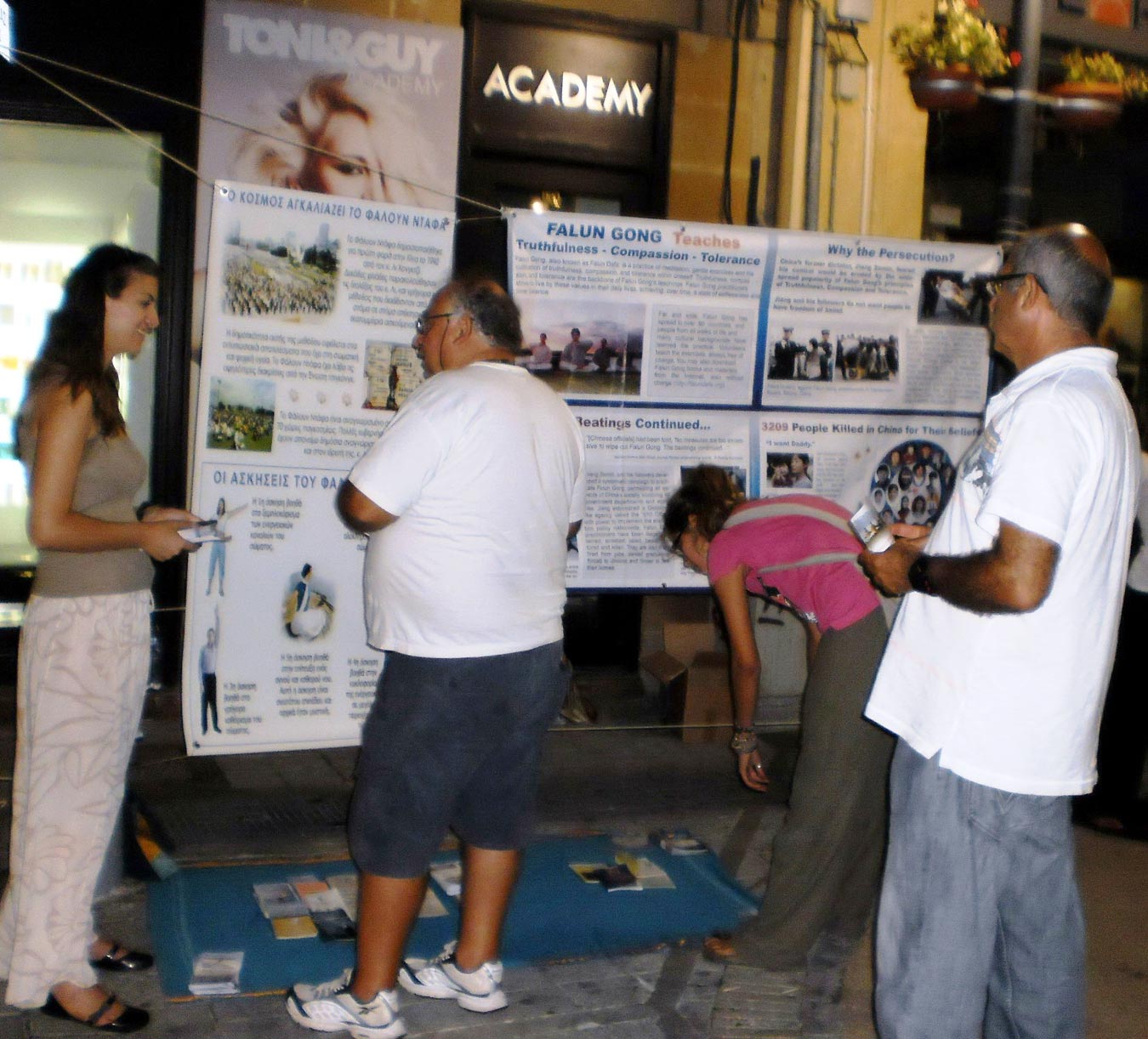 【明慧网二零一二年八月二十日】塞浦路斯是欧洲与亚洲交界处的一个岛国,位于地中海东部,是地中海地区最热门的旅游地之一。二零一二年八月一日到十三日,法轮功学员在塞浦路斯举办了十三天的洪法活动,向人们介绍以“真、善、忍”为修炼原则的法轮功,并揭露中共十三年来对法轮功修炼者的残酷迫害
