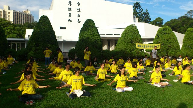 ![]() 一名年轻学子正在炼法轮大法第五套功法 |