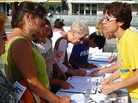 圣赛巴司蒂安市民及来自世界各地的游客签字声援法轮功反迫害