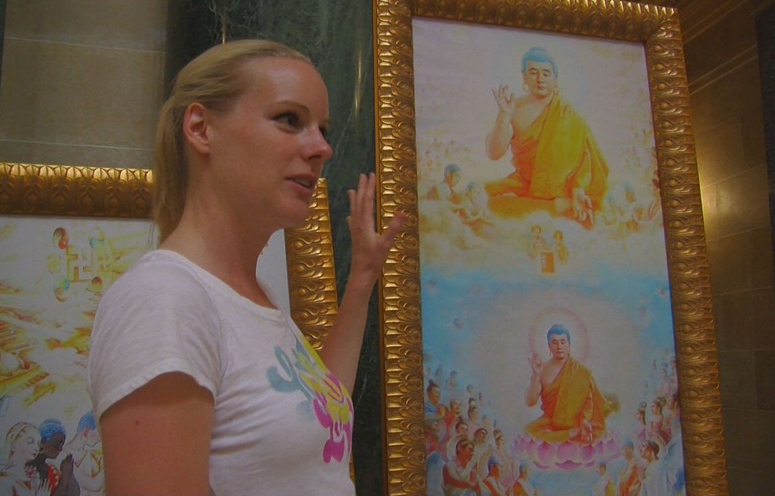 来自德国的克里斯蒂在麦迪逊大学做短期学术交流,她在德国就对法轮功被中共迫害的真相有所了解,但她是第一次看到真善忍美展。她在几幅神的画像前凝视良久。对西藏佛教有一定认知的她,认为这些画的灵感来自神佛,信仰是很重要的,这些画可以唤醒人们的良知。最后她表达了自己对法轮功学员的美好祝福,并真诚地说,“我希望中国不久就会改变!”