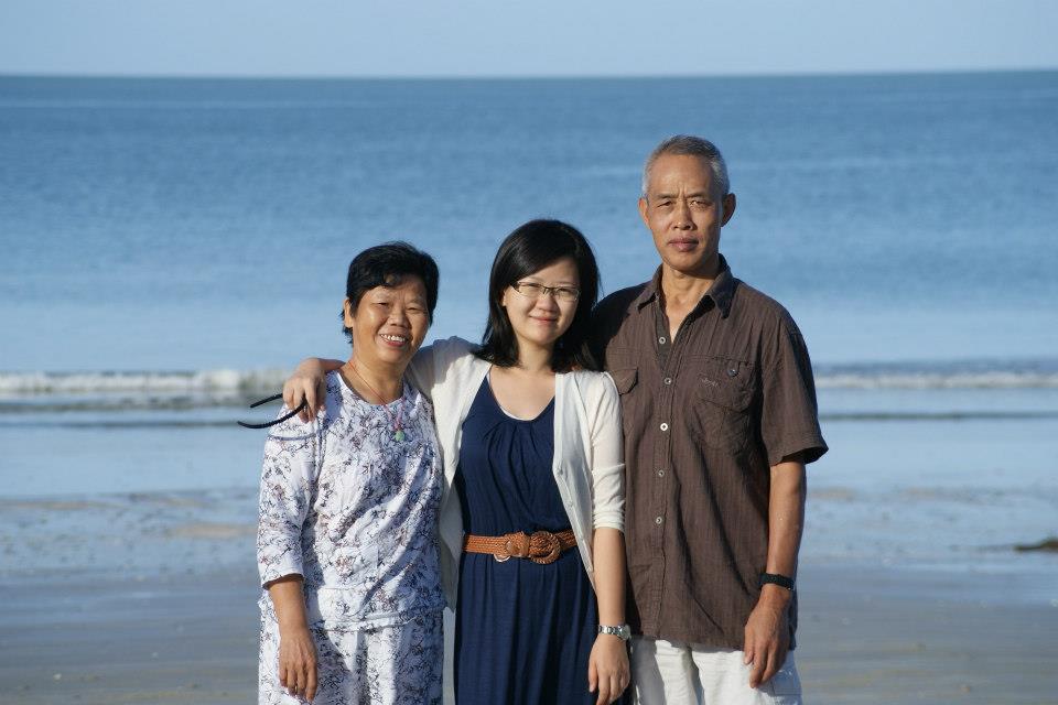 ![]() 吴瑞荣与妻女摄于马来西亚。 |