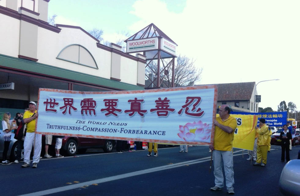 离悉尼市中心一百多公里的宝柔镇(Bowral),是澳洲有名的种植郁金香花的地方。每年不仅有澳洲本地的游人,而且还有海外游客特意赶来观赏郁金香花和旅游,所以每年的郁金花节日游行也是这个富有小镇上的重头节目。这是当地法轮功学员第九次参加这个游行活动,所到之处都赢得民众的掌声欢迎和灿烂的微笑,表露了他们对法轮功团体的了解和对横幅上的普世真理“真、善、忍”的高度赞同。人们在法轮功学员面前争相抢着要真相资料。