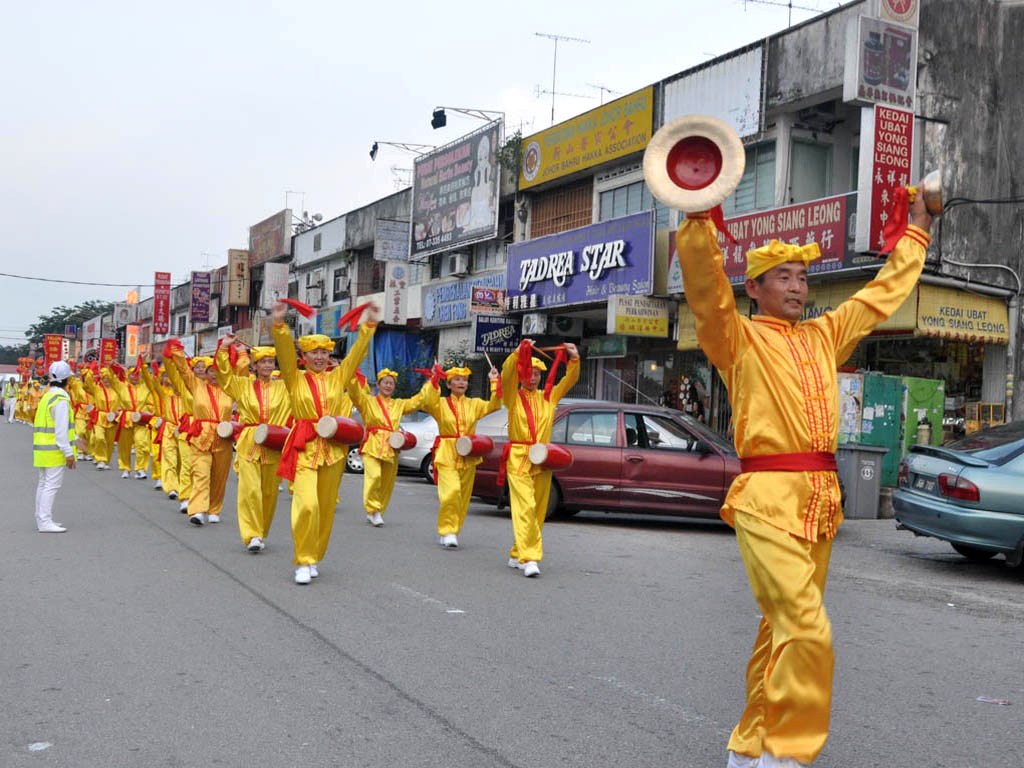 这是法轮功游行队伍第一次来到这三个在新山属于华人社团最活跃的地区游行庆中秋,弘扬华人传统文化,把佳节欢乐气息带给大家。壮观整齐的队伍,让当地民众眼前一亮,浩大的游行场面更是震撼了当地民众,所到之处不但受到大家的关注,欢迎和好评,同时也化解了一些当地民众多年来因中共谎言而对法轮功产生的误解。