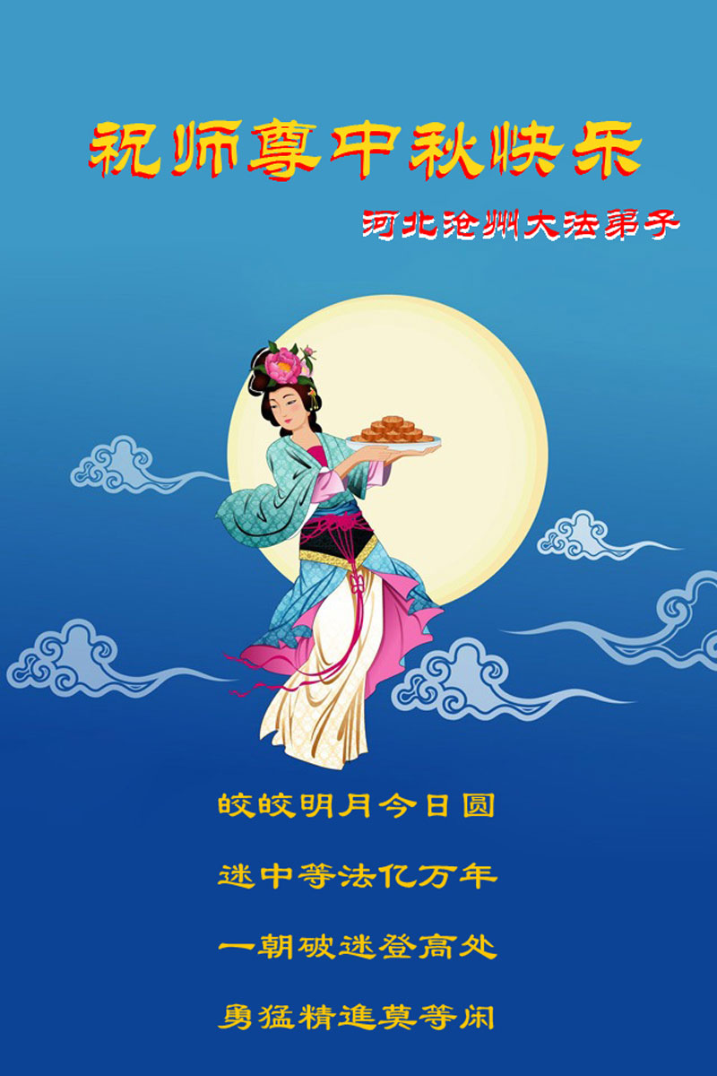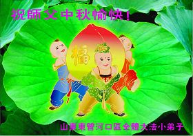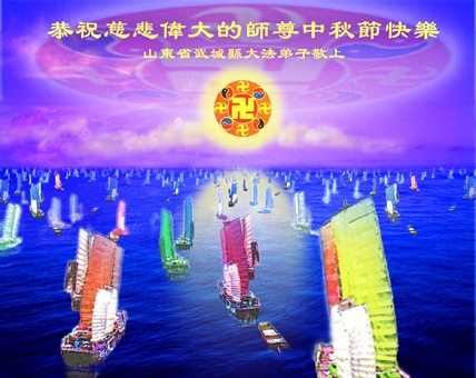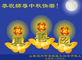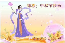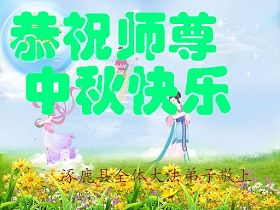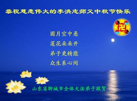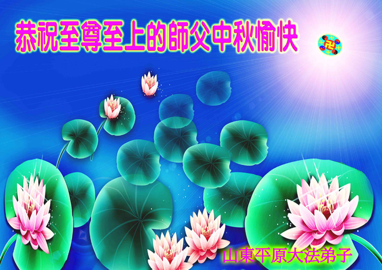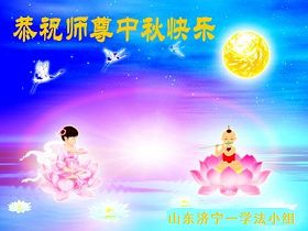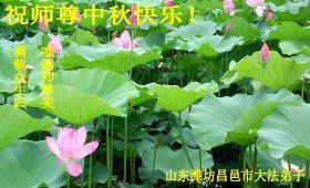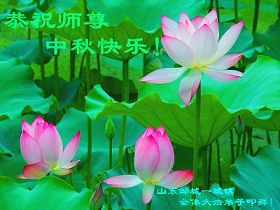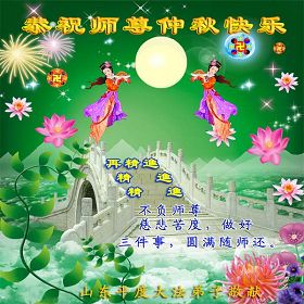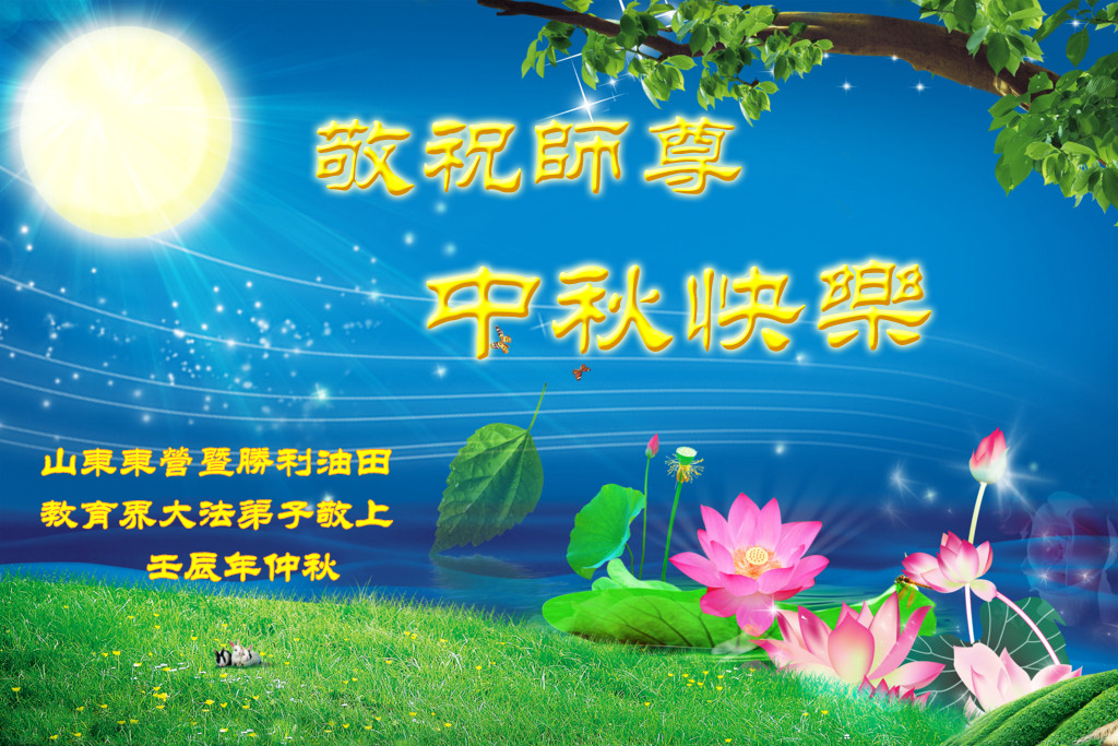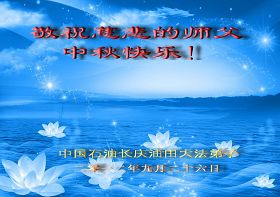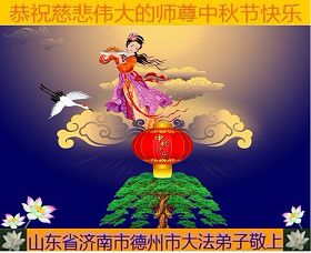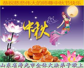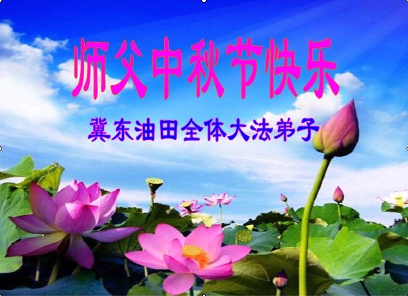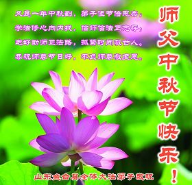 胜利油田及东营市大法弟子恭祝伟大的师尊中秋节快乐!我们继续做好三件事,不辜负师父的苦度与期盼,多救众生,随师父圆满回家。