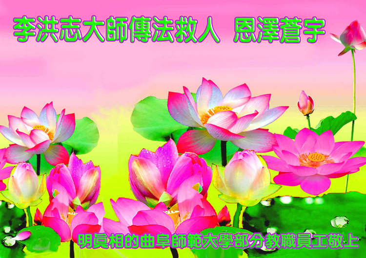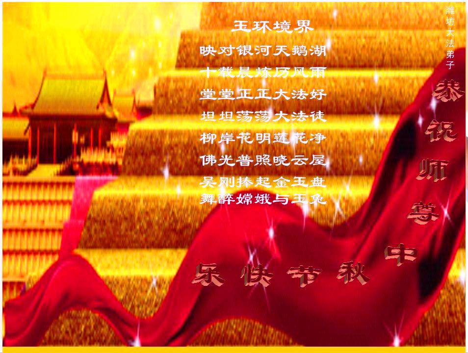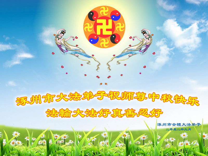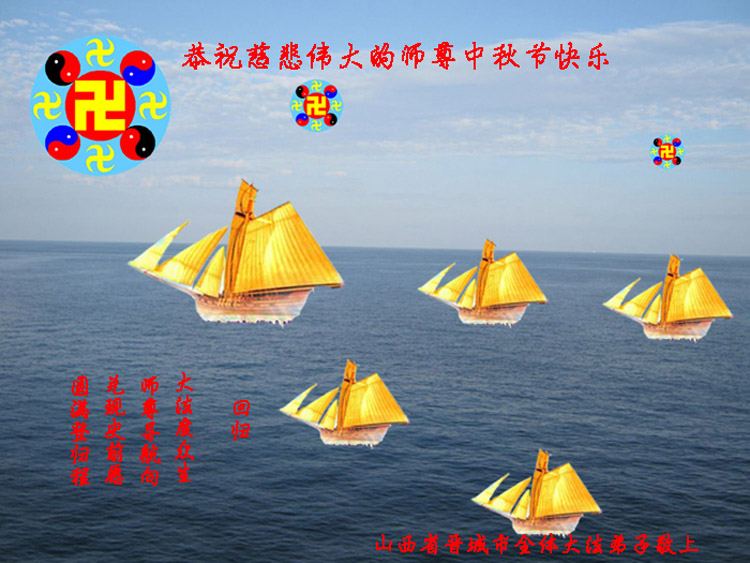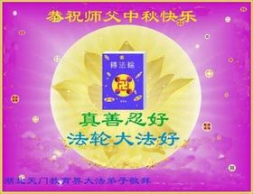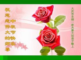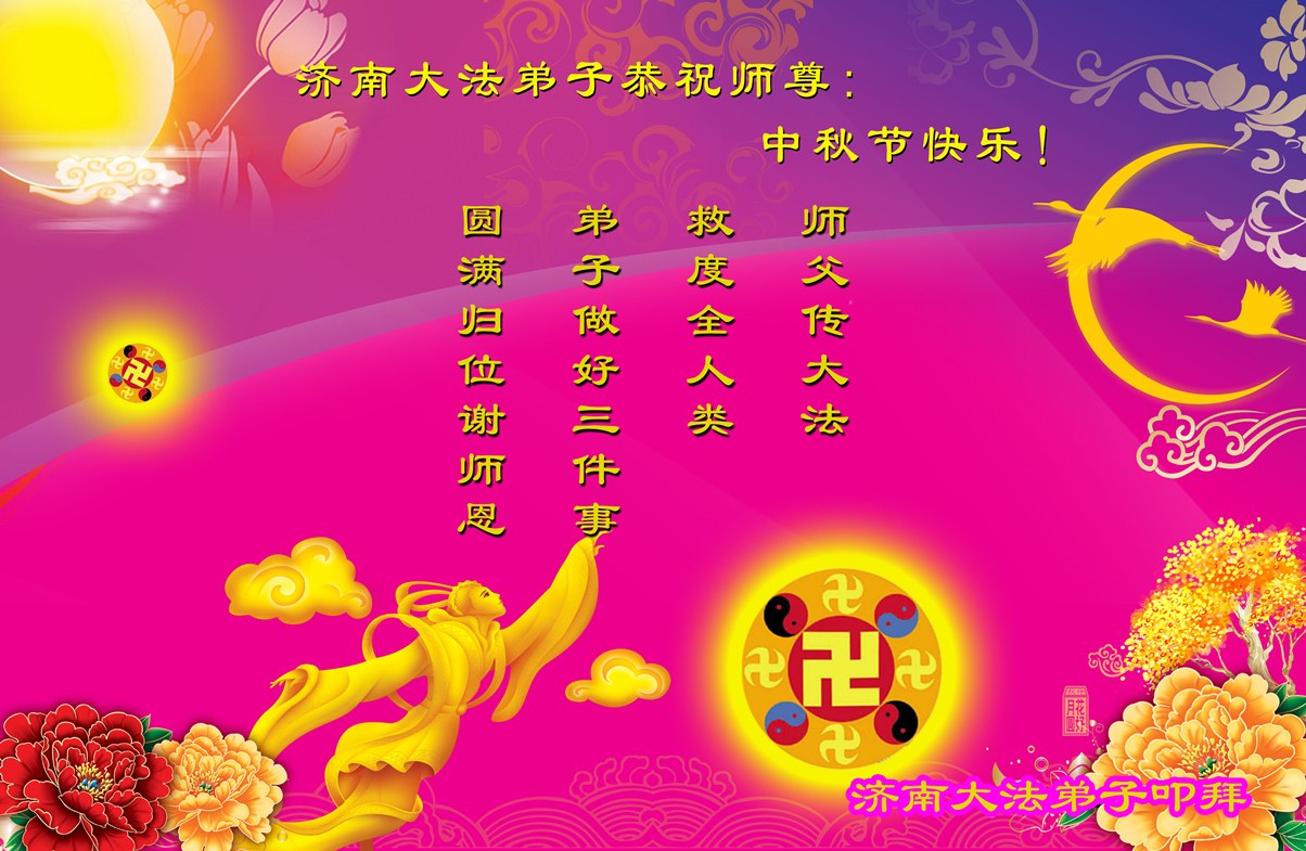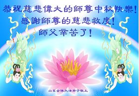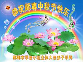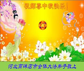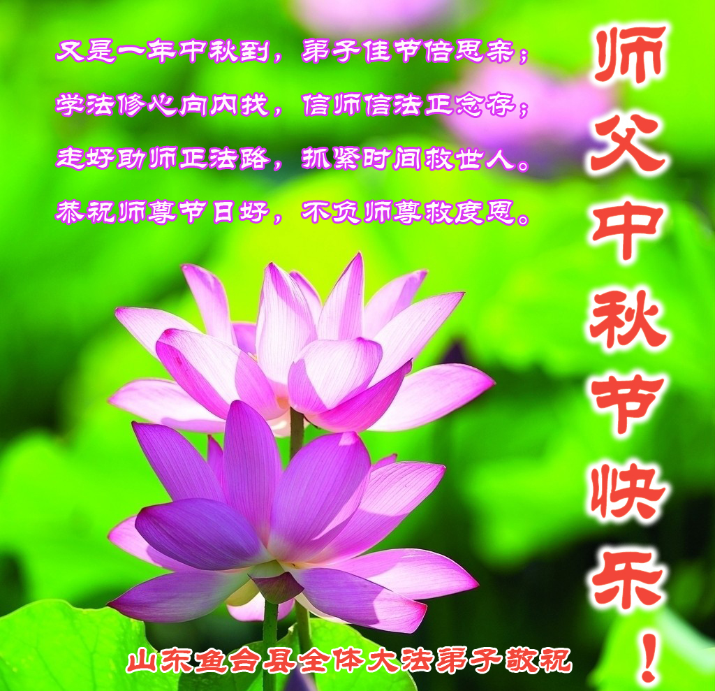 胜利油田及东营市大法弟子恭祝伟大的师尊中秋节快乐!我们继续做好三件事,不辜负师父的苦度与期盼,多救众生,随师父圆满回家。
