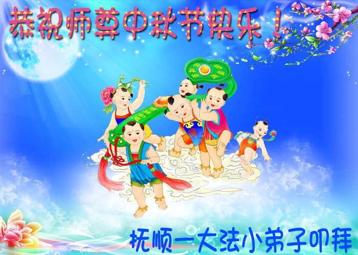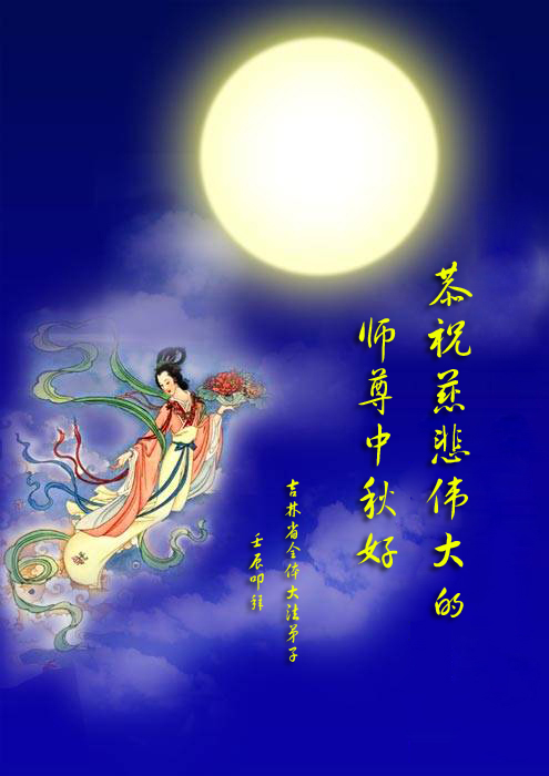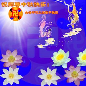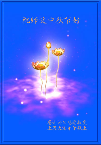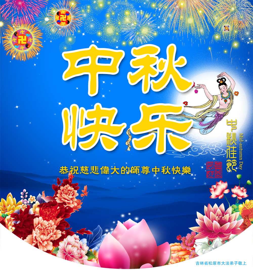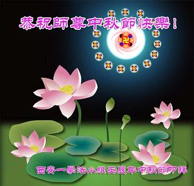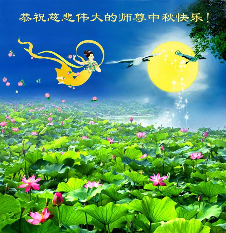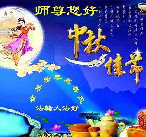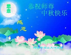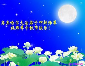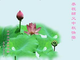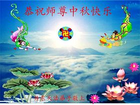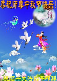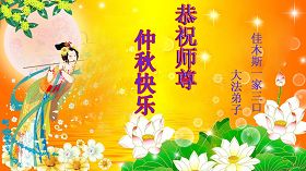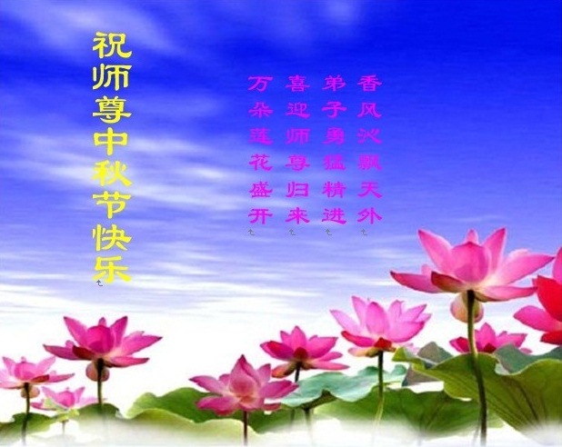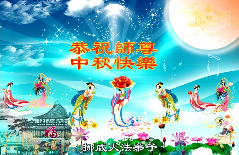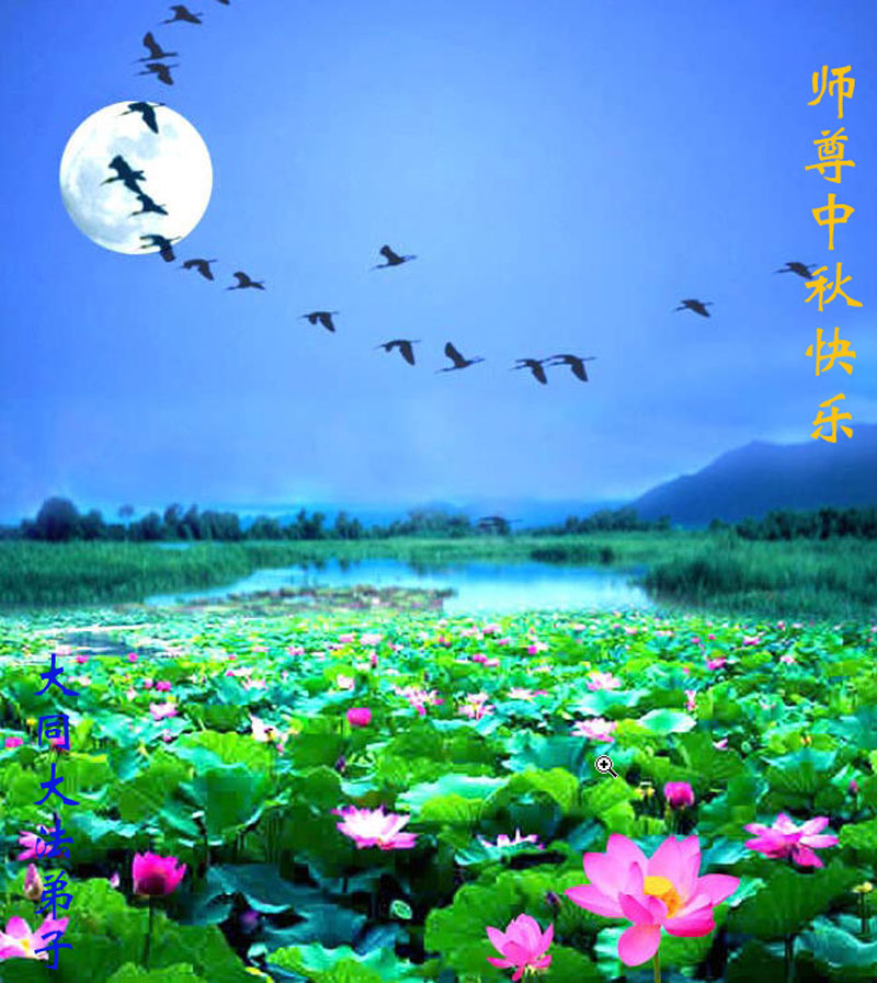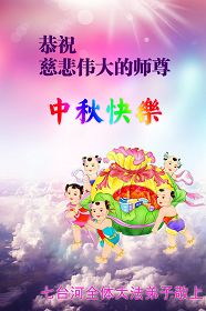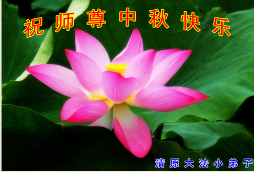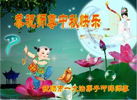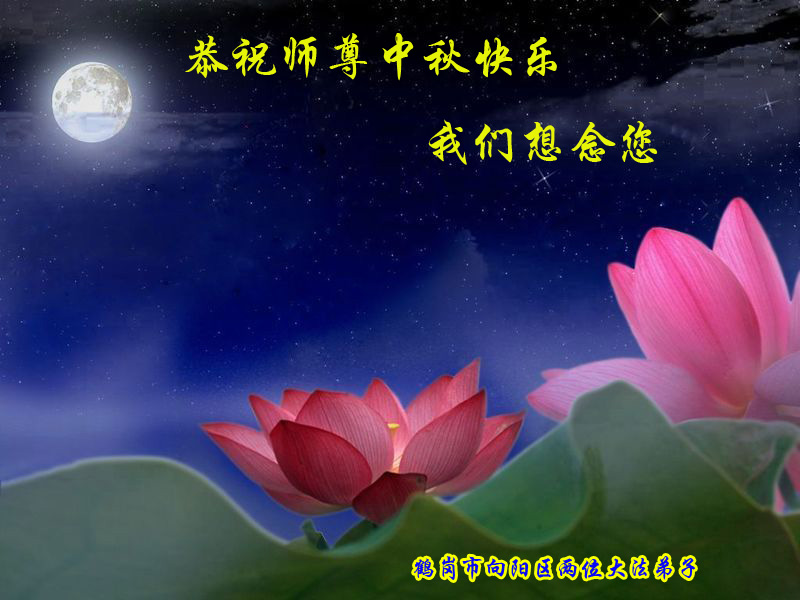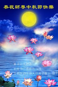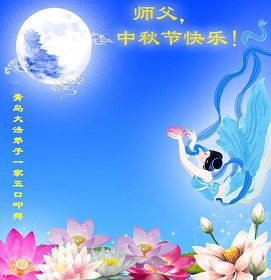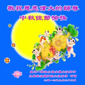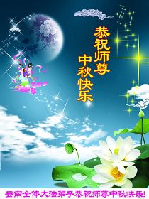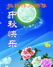 师尊好!又是一年的中秋佳节,我们非常想念师尊!祝师尊中秋节快乐!能成为大法弟子,我们感到非常荣耀和幸福。正法洪势突飞猛進,我们大法弟子不忘自己的使命,每天讲真相救众生,努力做好三件事。彼此沟通、互相配合、共同精進,圆满随师还。