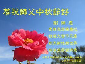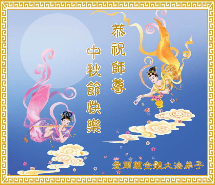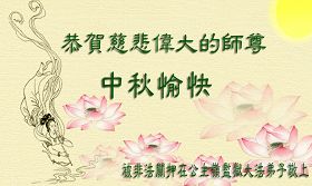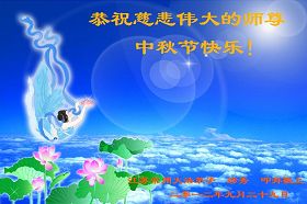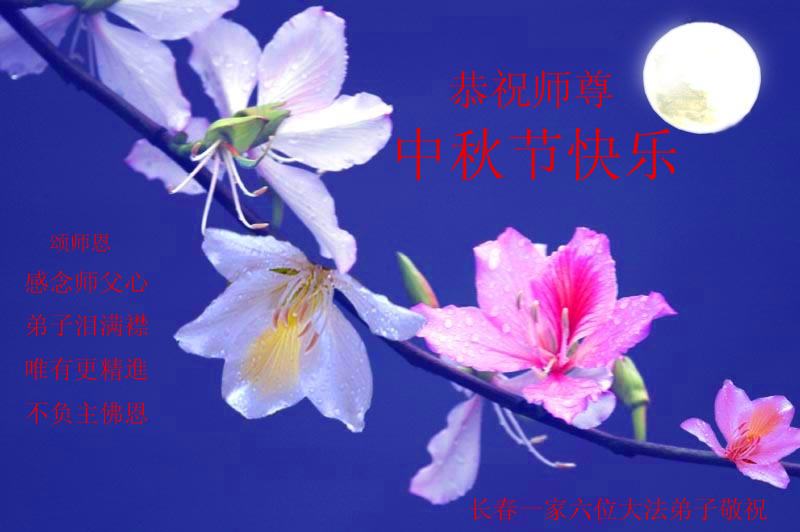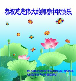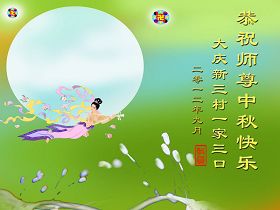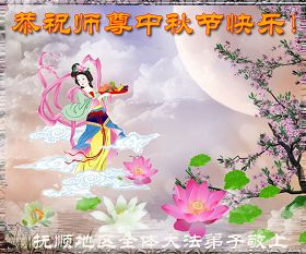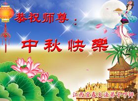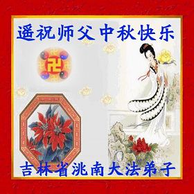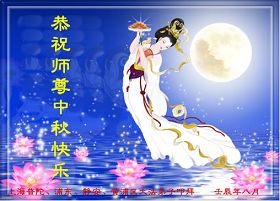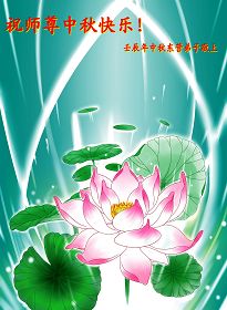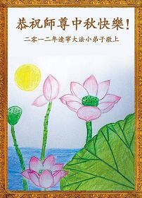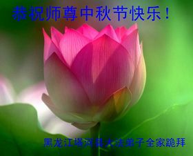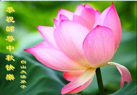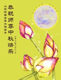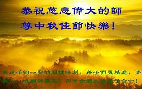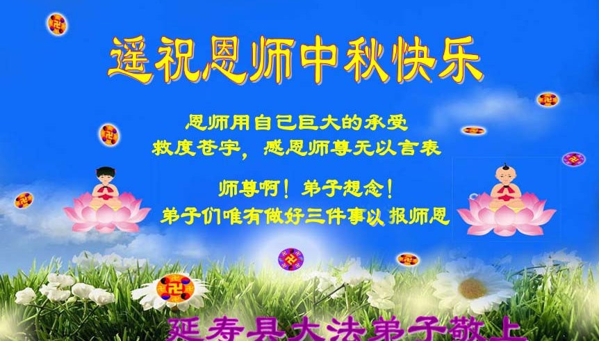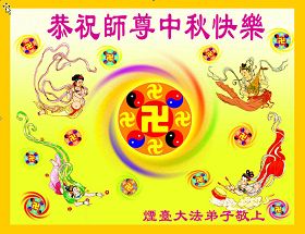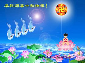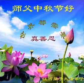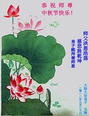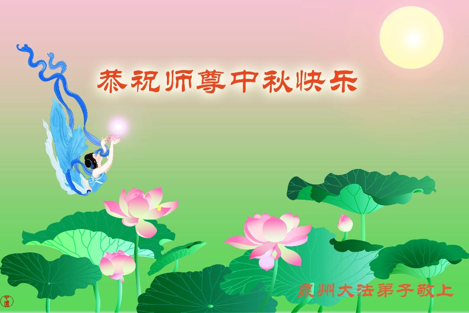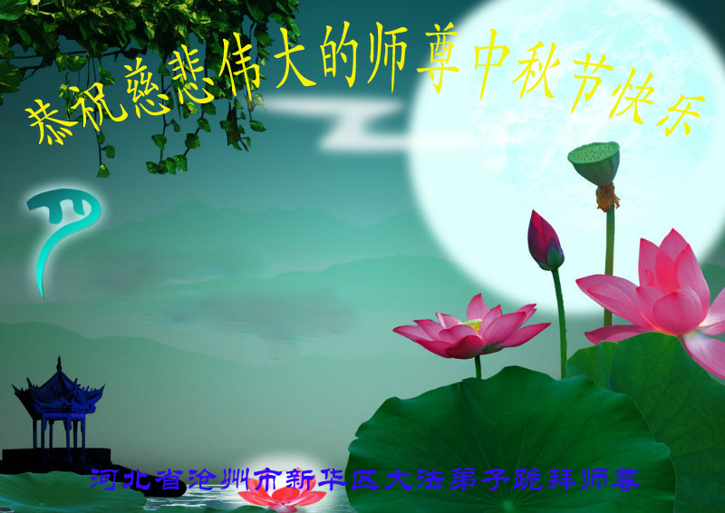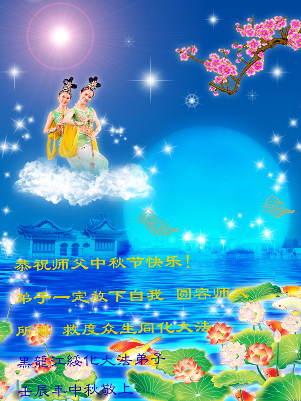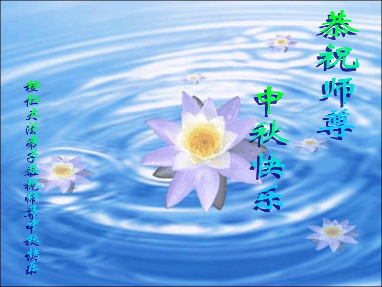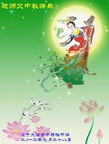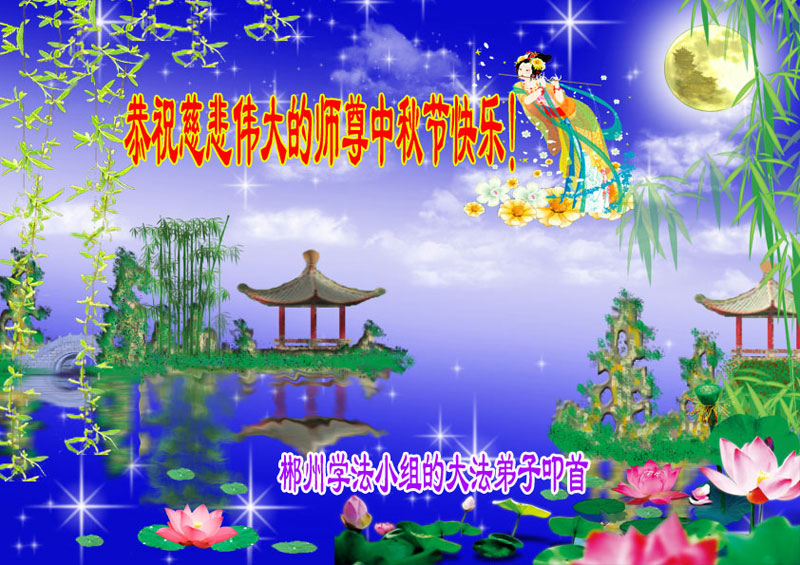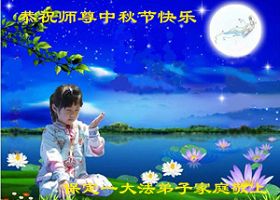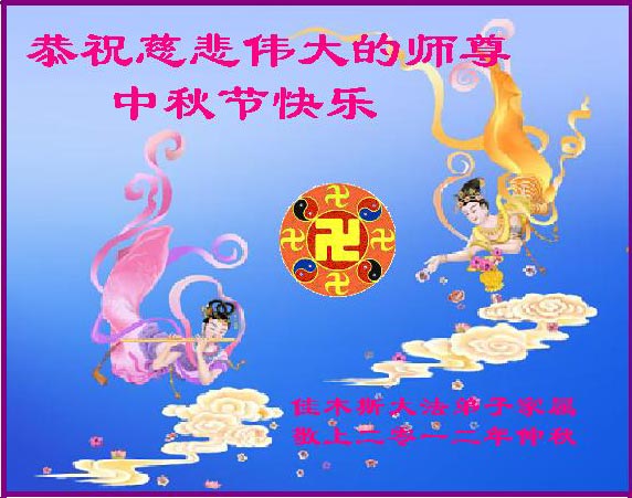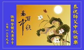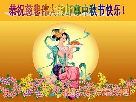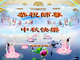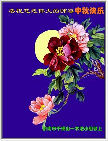 师尊好!又是一年的中秋佳节,我们非常想念师尊!祝师尊中秋节快乐!能成为大法弟子,我们感到非常荣耀和幸福。正法洪势突飞猛進,我们大法弟子不忘自己的使命,每天讲真相救众生,努力做好三件事。彼此沟通、互相配合、共同精進,圆满随师还。