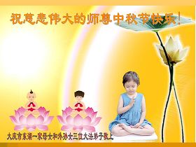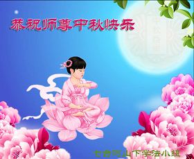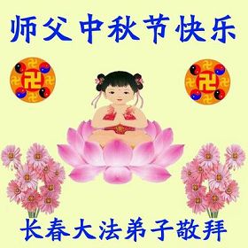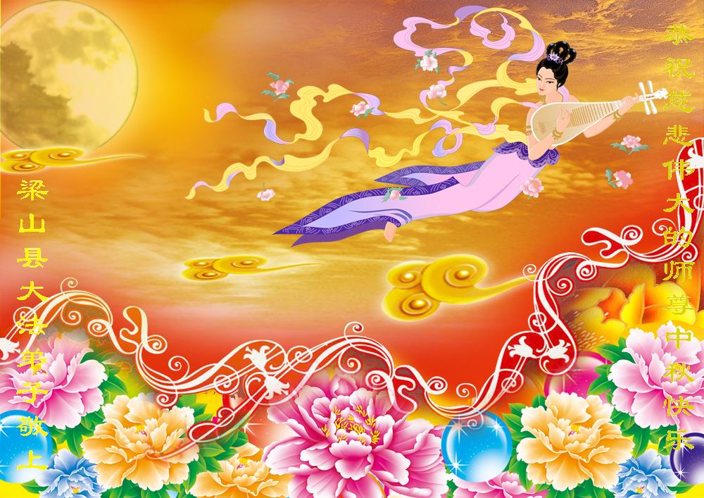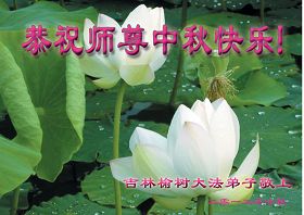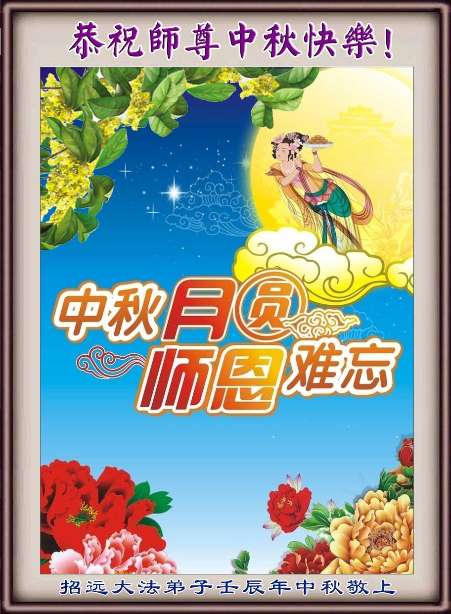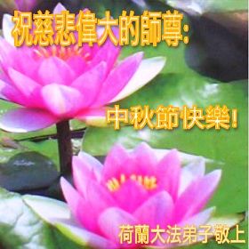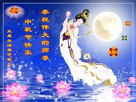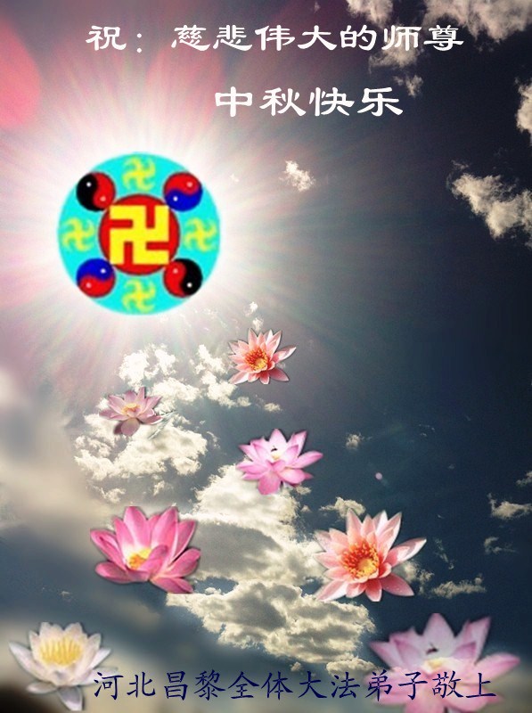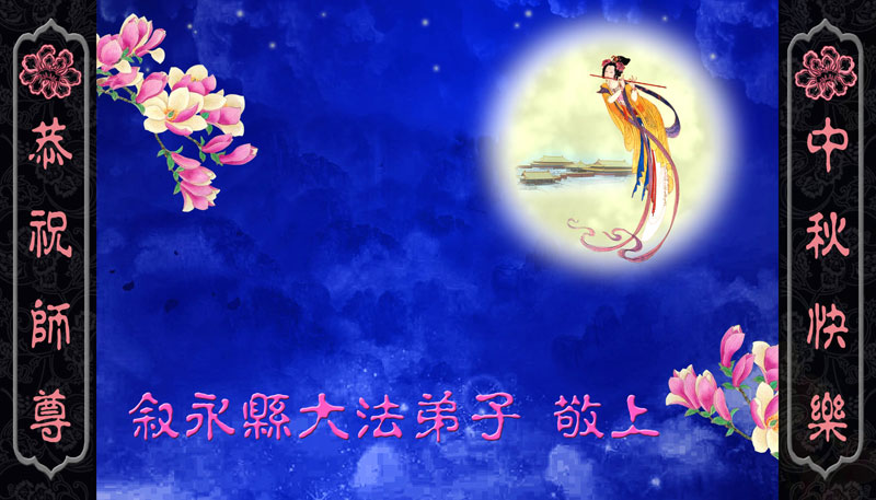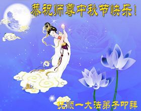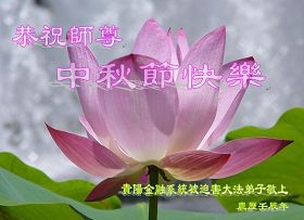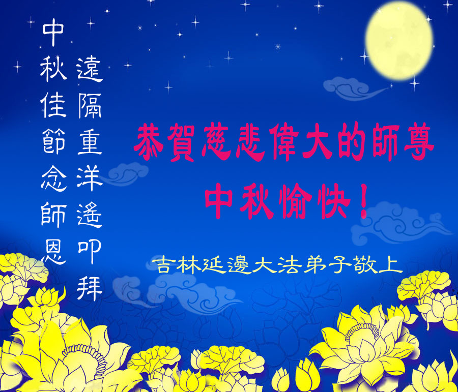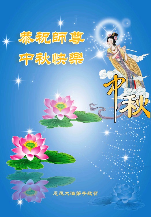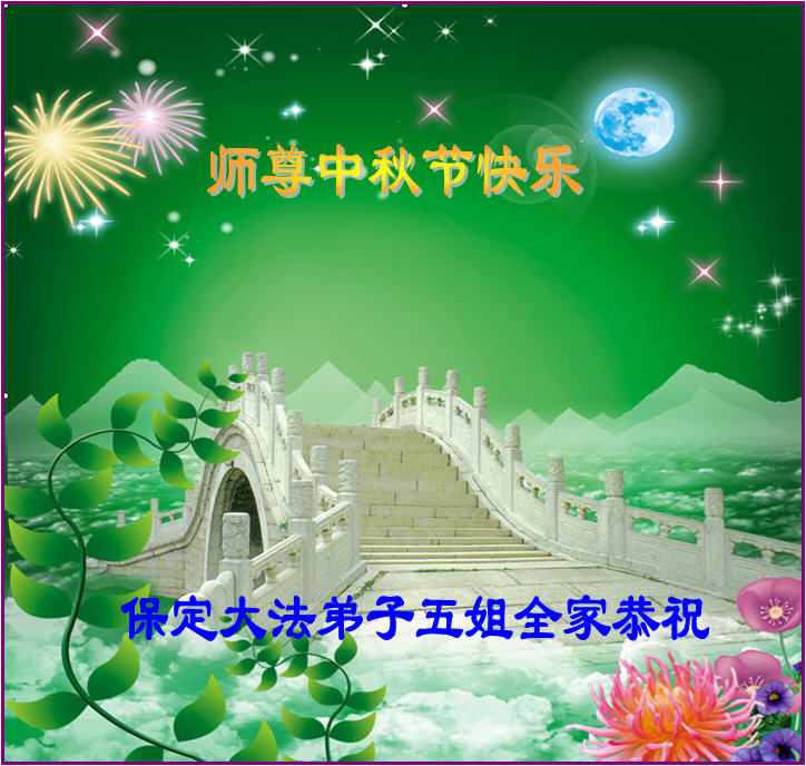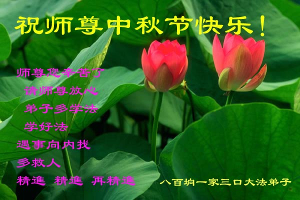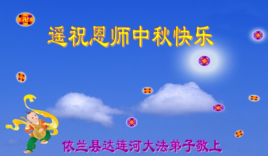 师尊好!又是一年的中秋佳节,我们非常想念师尊!祝师尊中秋节快乐!能成为大法弟子,我们感到非常荣耀和幸福。正法洪势突飞猛進,我们大法弟子不忘自己的使命,每天讲真相救众生,努力做好三件事。彼此沟通、互相配合、共同精進,圆满随师还。