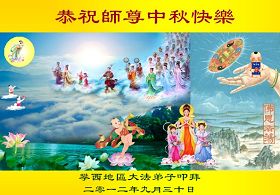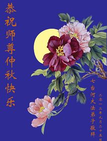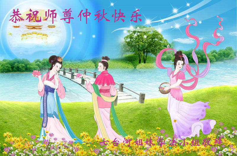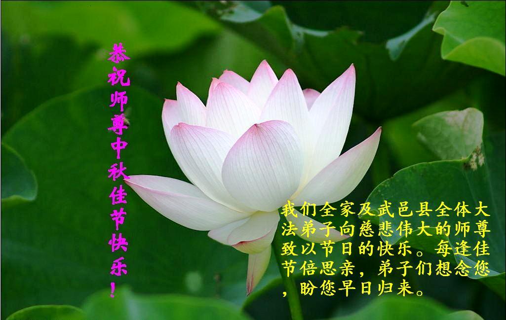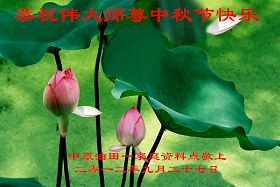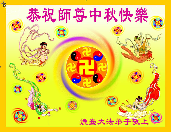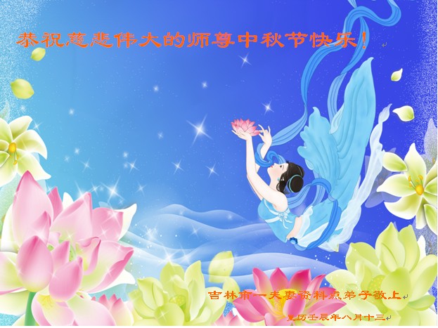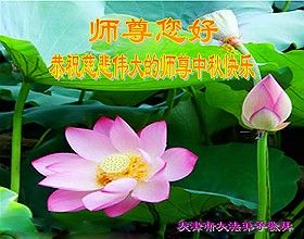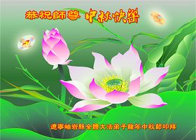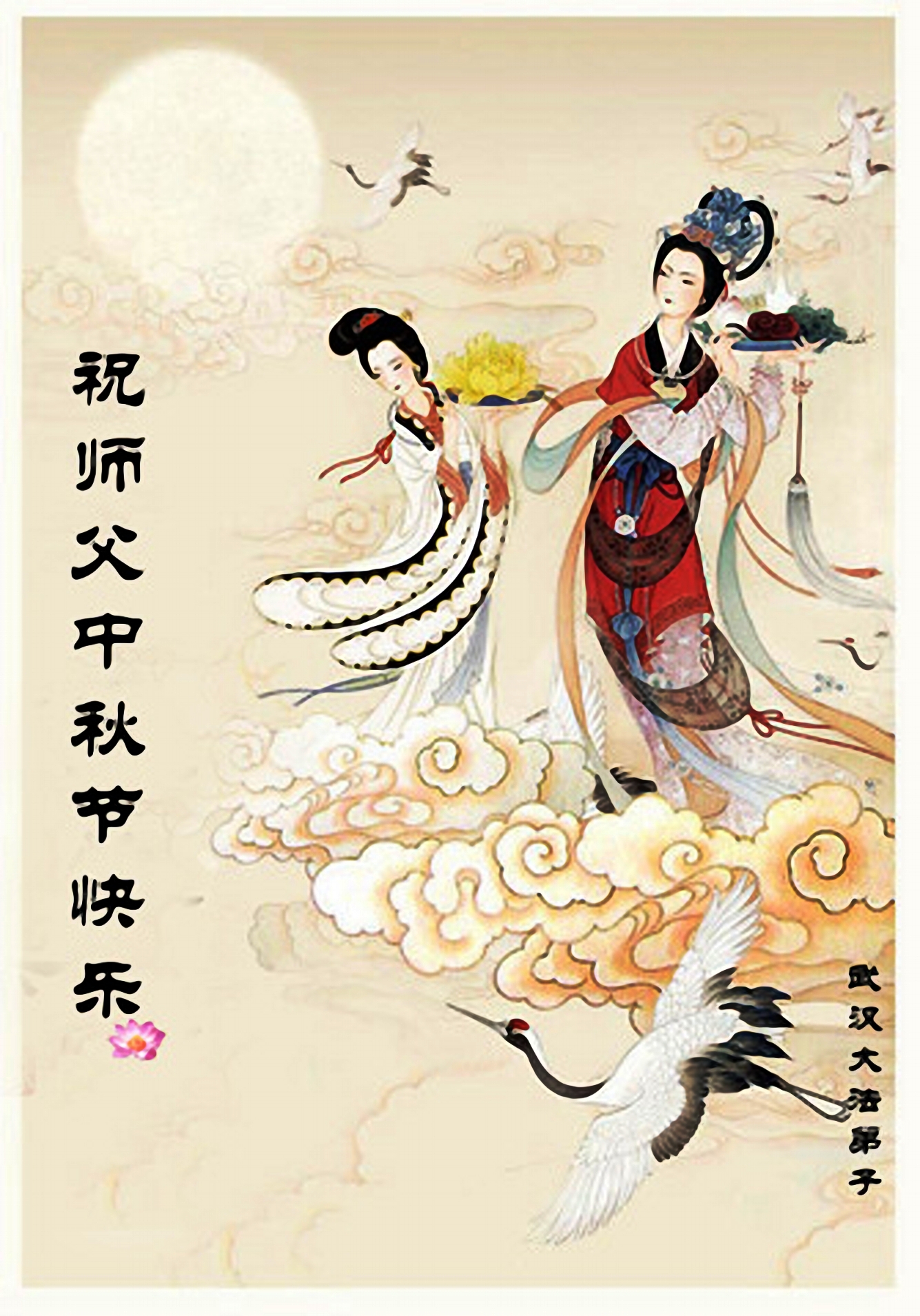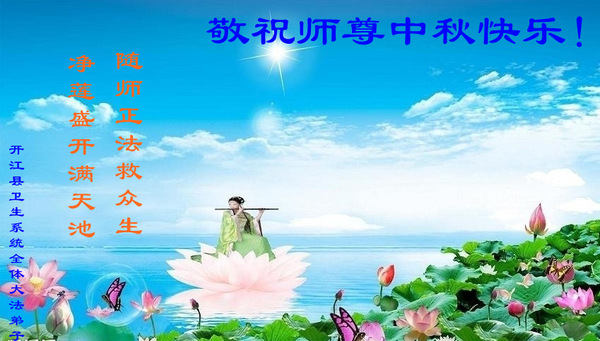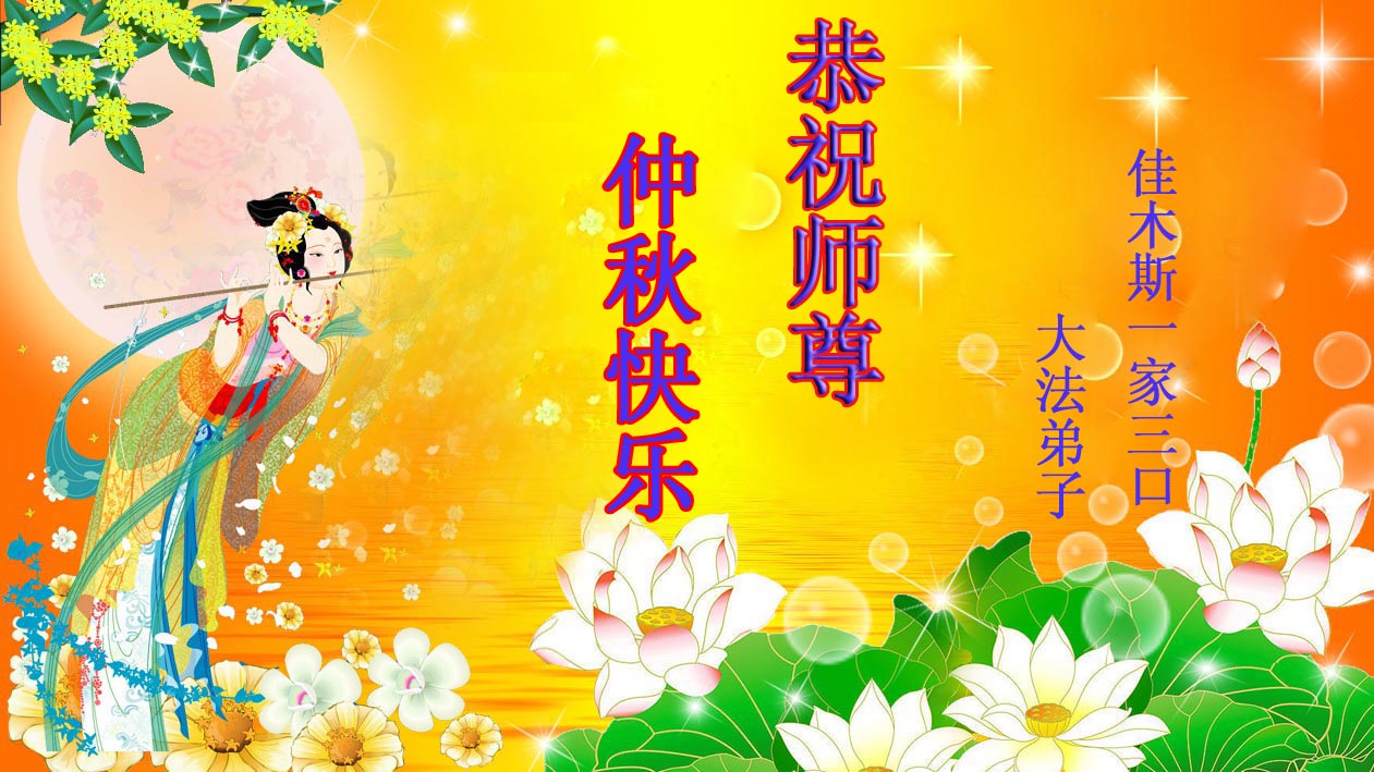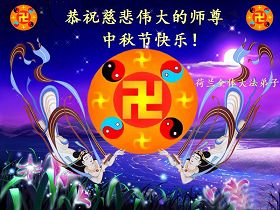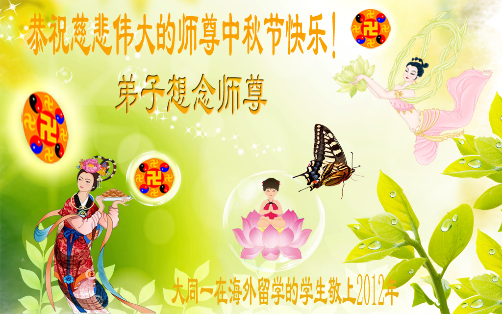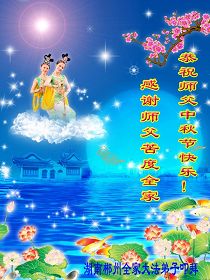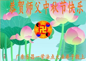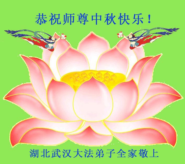 师尊好!又是一年的中秋佳节,我们非常想念师尊!祝师尊中秋节快乐!能成为大法弟子,我们感到非常荣耀和幸福。正法洪势突飞猛進,我们大法弟子不忘自己的使命,每天讲真相救众生,努力做好三件事。彼此沟通、互相配合、共同精進,圆满随师还。