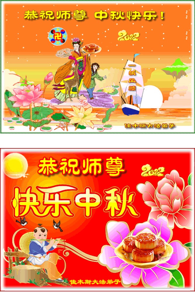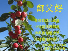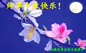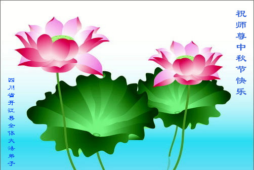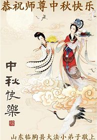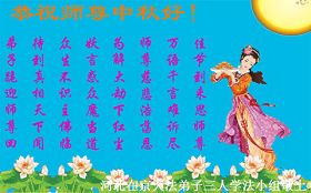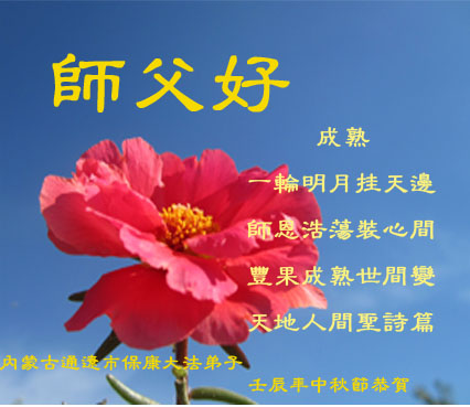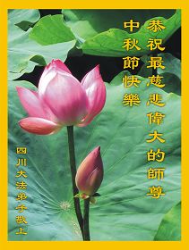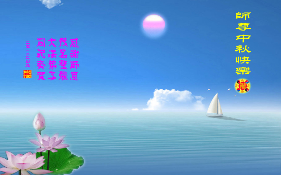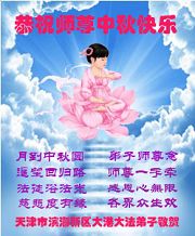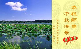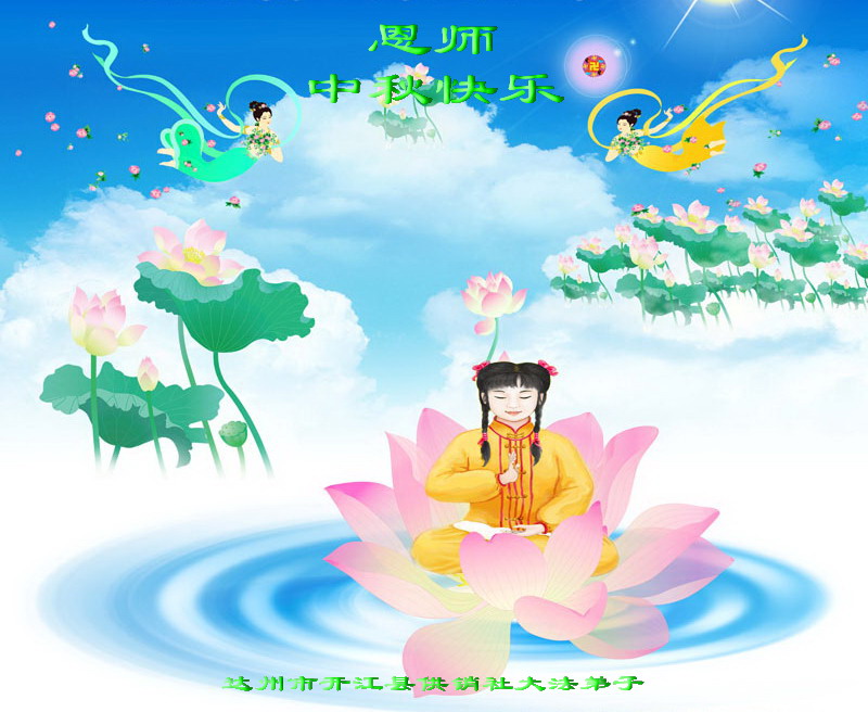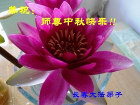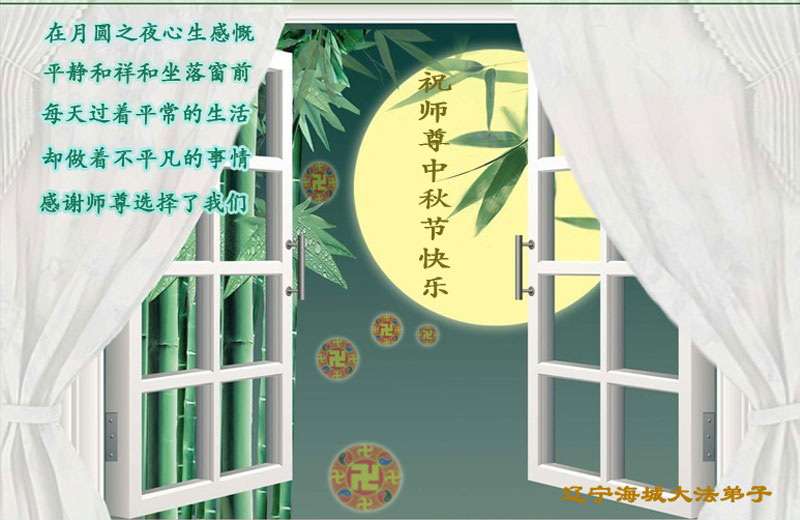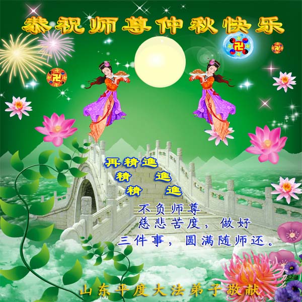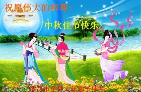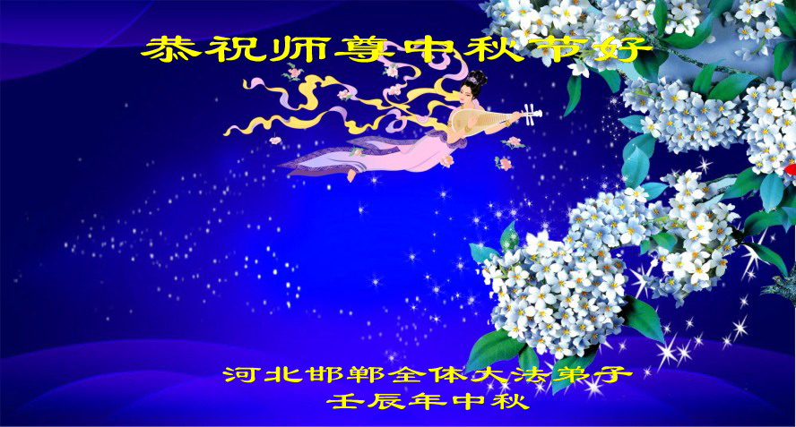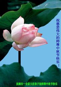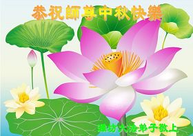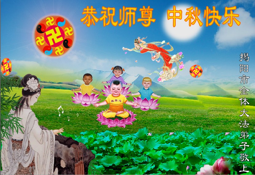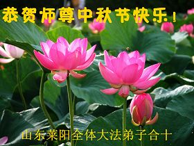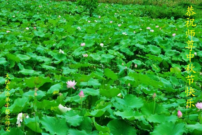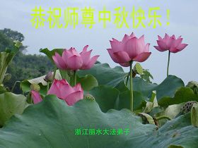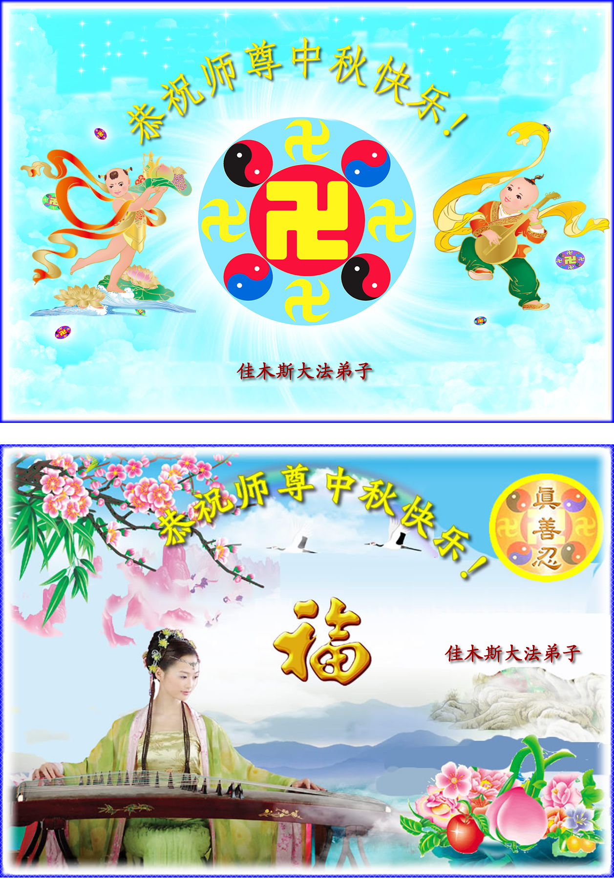 师尊好!又是一年的中秋佳节,我们非常想念师尊!祝师尊中秋节快乐!能成为大法弟子,我们感到非常荣耀和幸福。正法洪势突飞猛進,我们大法弟子不忘自己的使命,每天讲真相救众生,努力做好三件事。彼此沟通、互相配合、共同精進,圆满随师还。