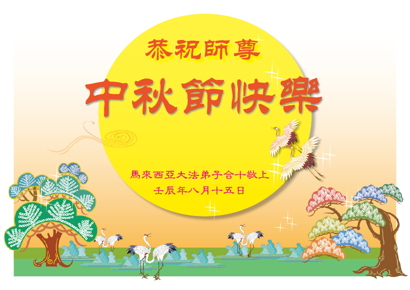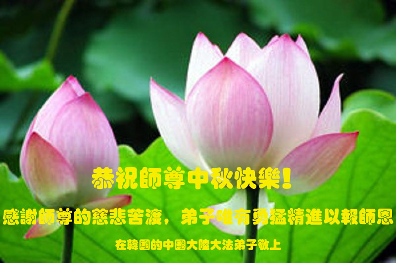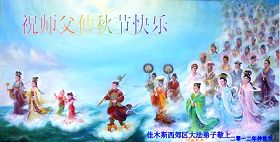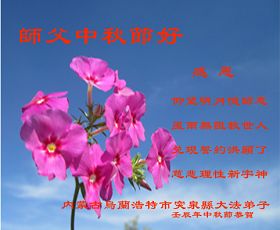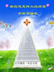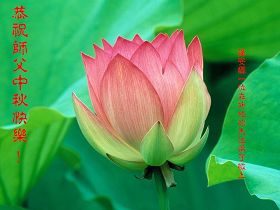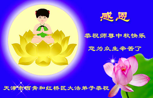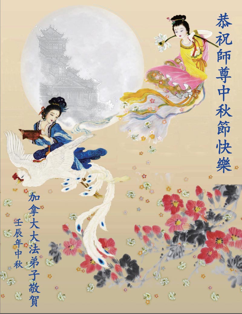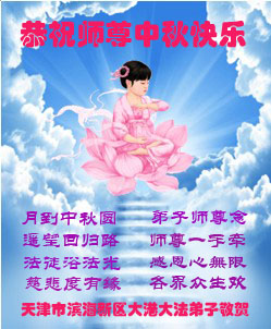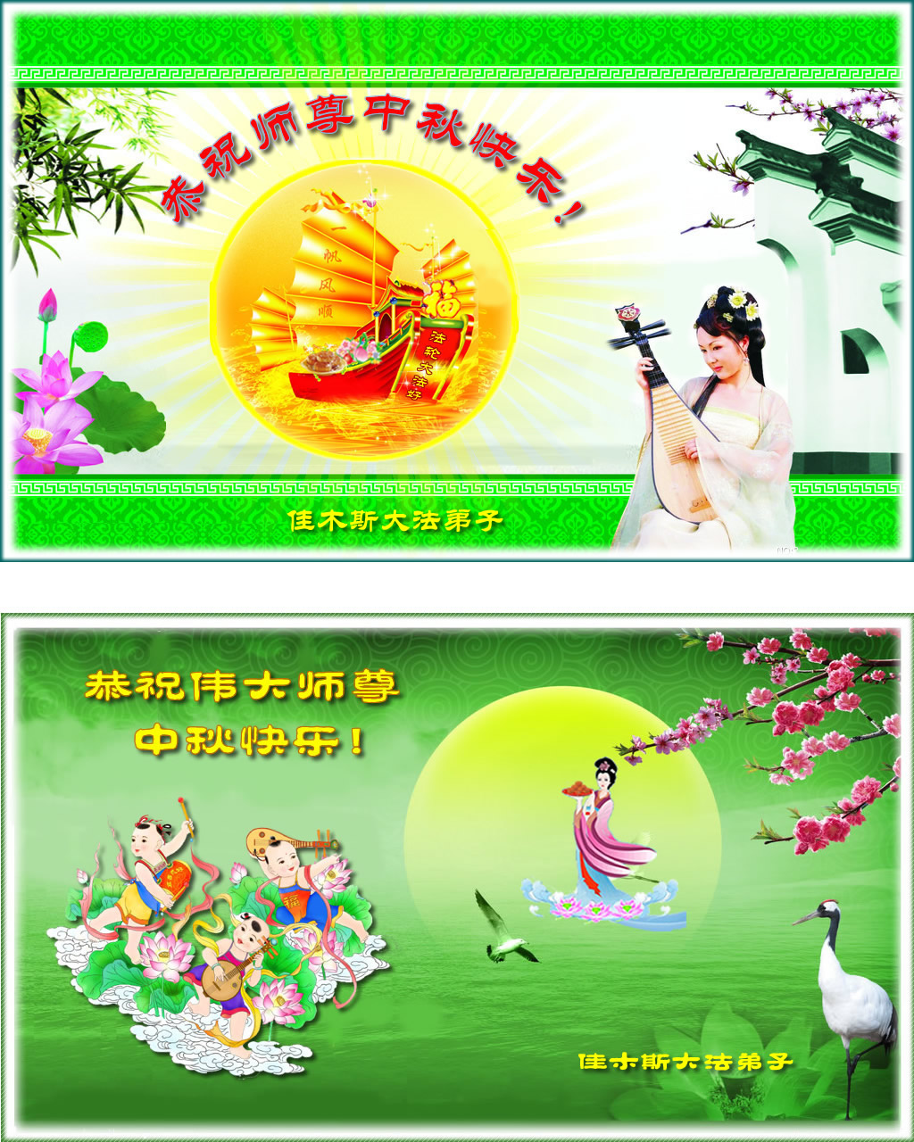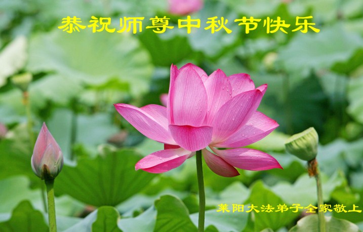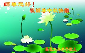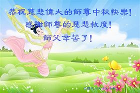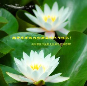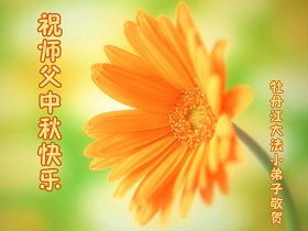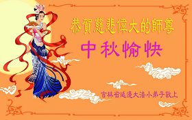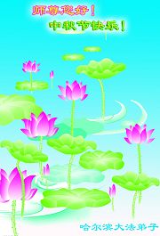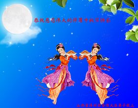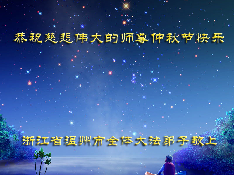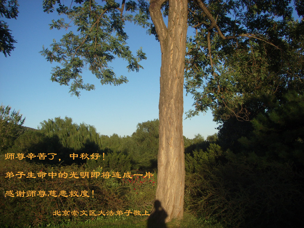 师尊好!又是一年的中秋佳节,我们非常想念师尊!祝师尊中秋节快乐!能成为大法弟子,我们感到非常荣耀和幸福。正法洪势突飞猛進,我们大法弟子不忘自己的使命,每天讲真相救众生,努力做好三件事。彼此沟通、互相配合、共同精進,圆满随师还。