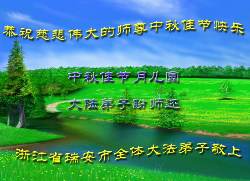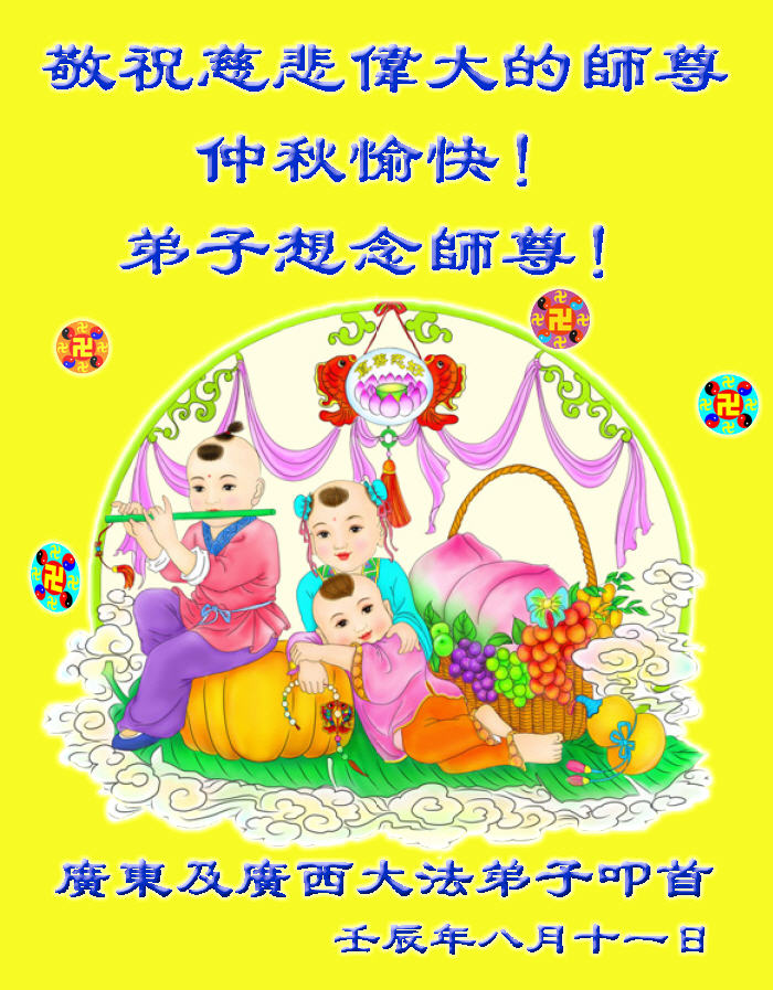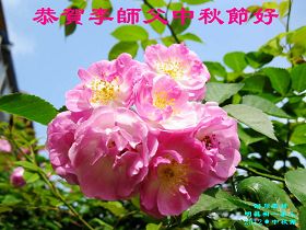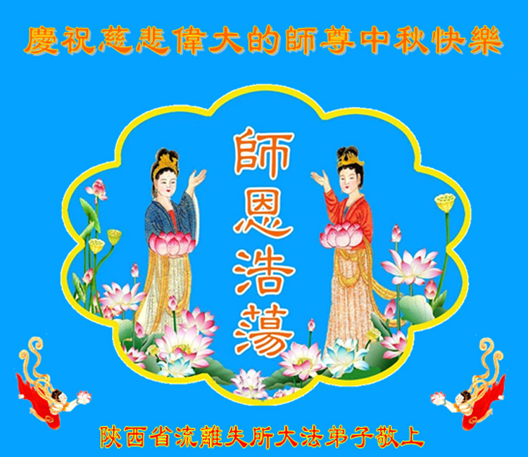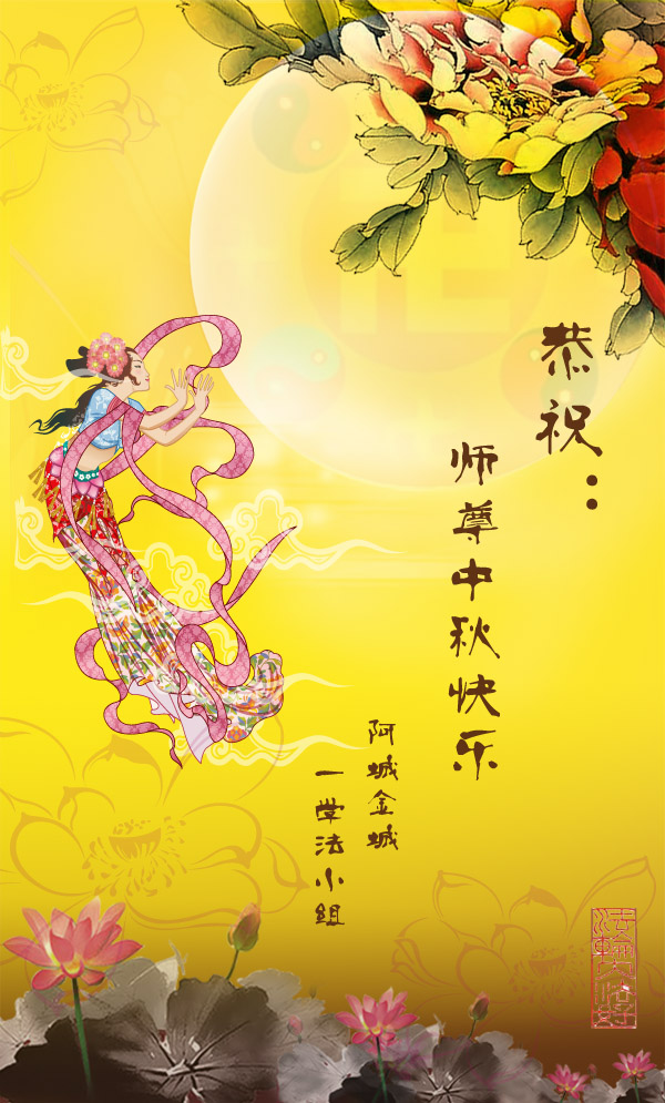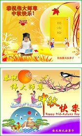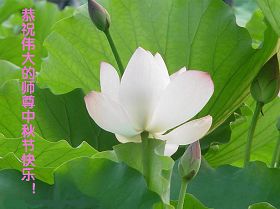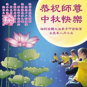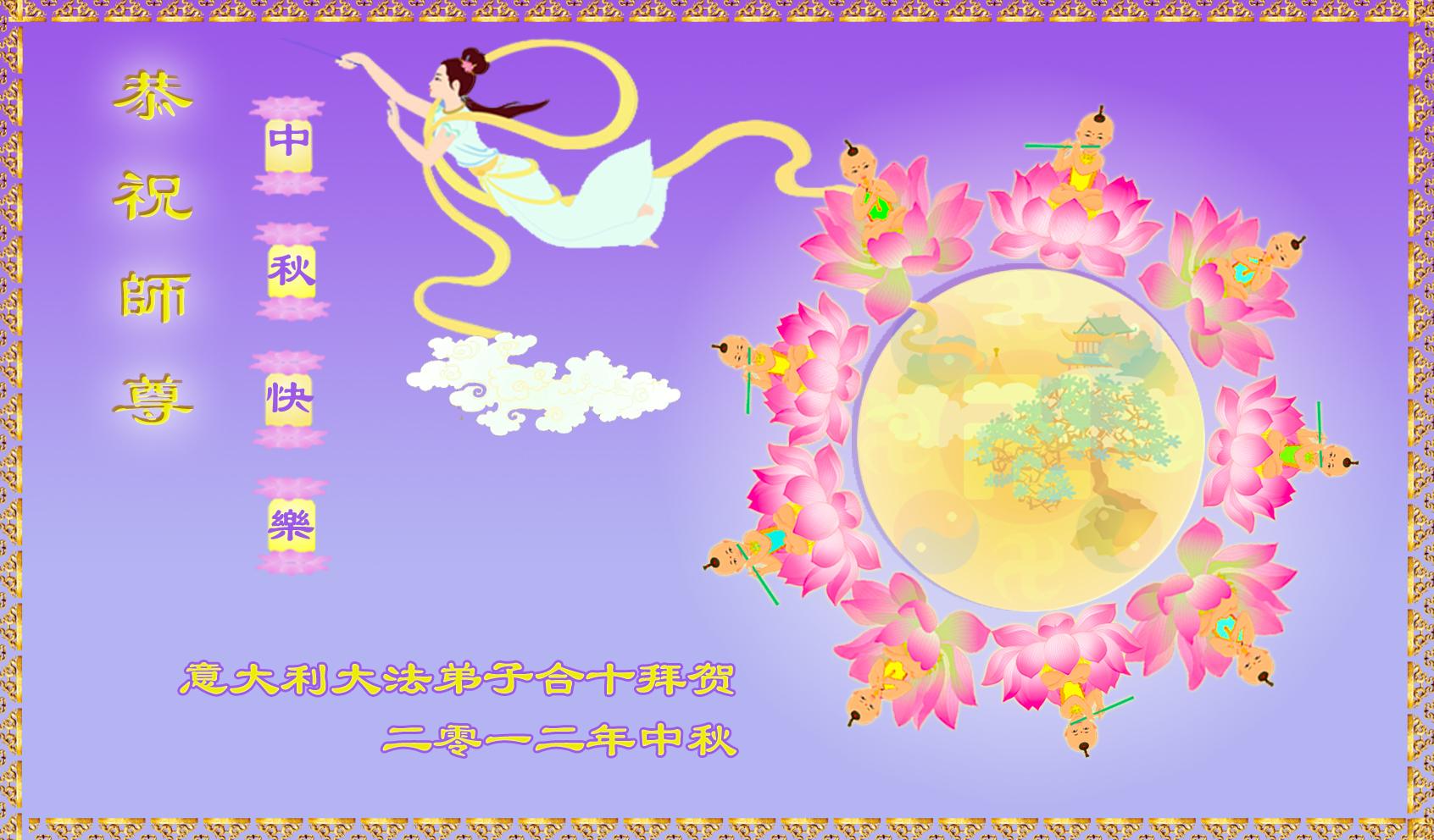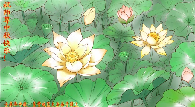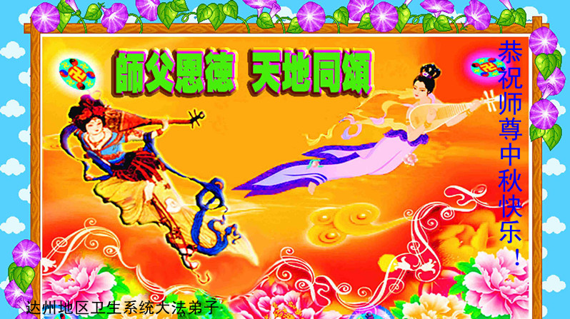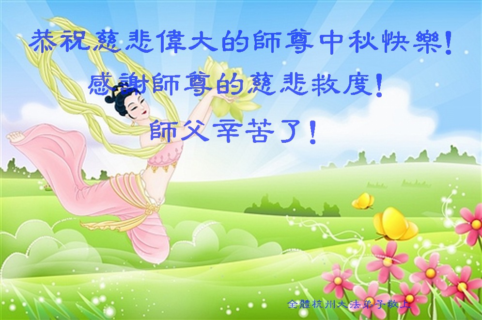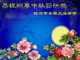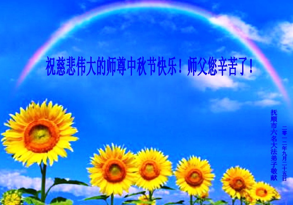 师尊好!又是一年的中秋佳节,我们非常想念师尊!祝师尊中秋节快乐!能成为大法弟子,我们感到非常荣耀和幸福。正法洪势突飞猛進,我们大法弟子不忘自己的使命,每天讲真相救众生,努力做好三件事。彼此沟通、互相配合、共同精進,圆满随师还。