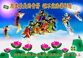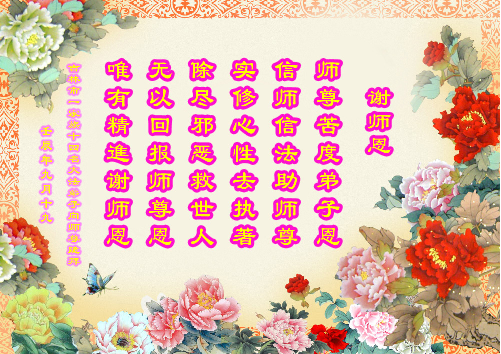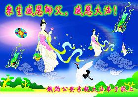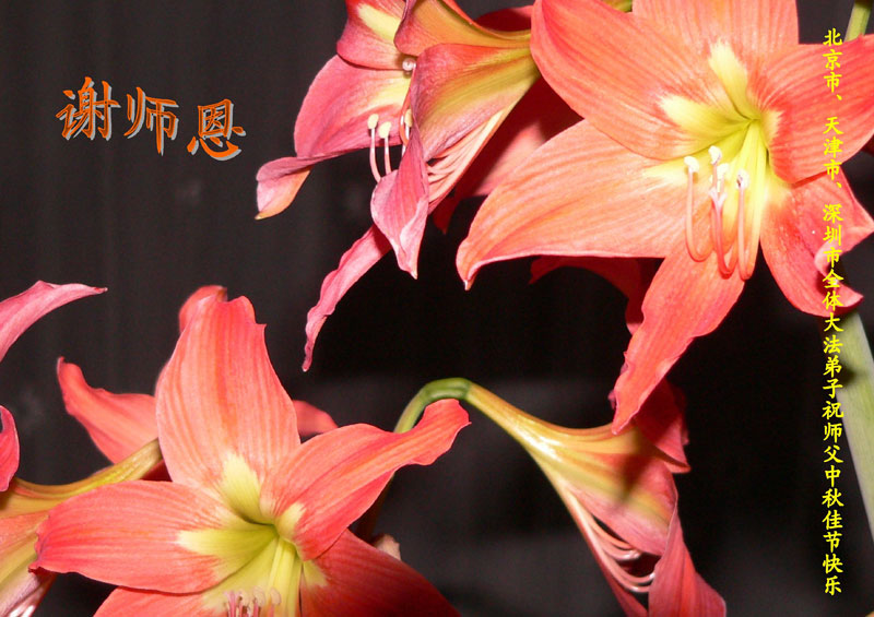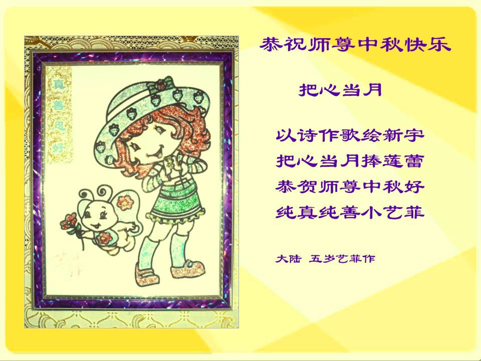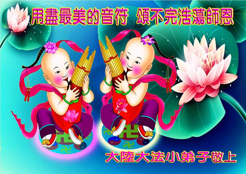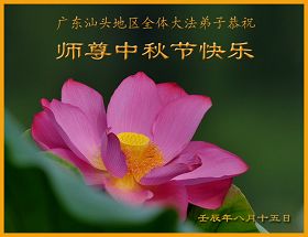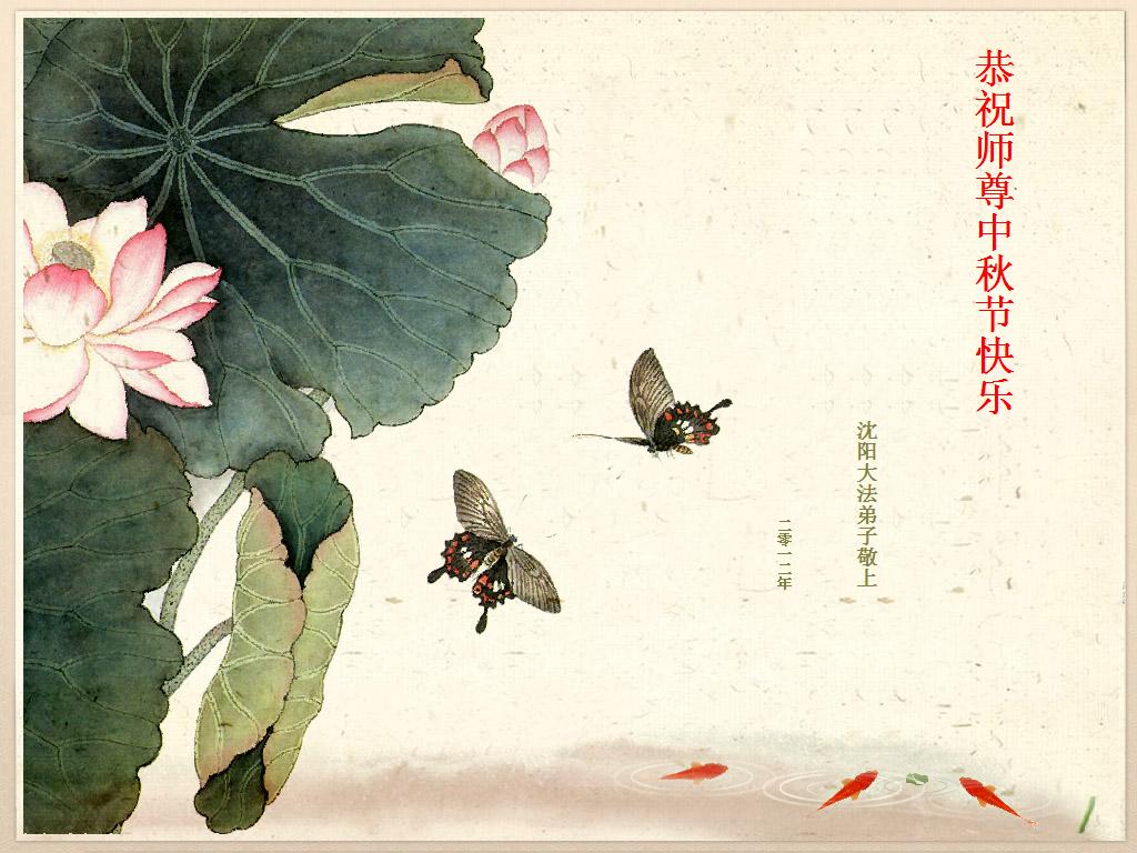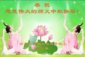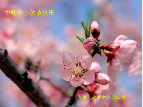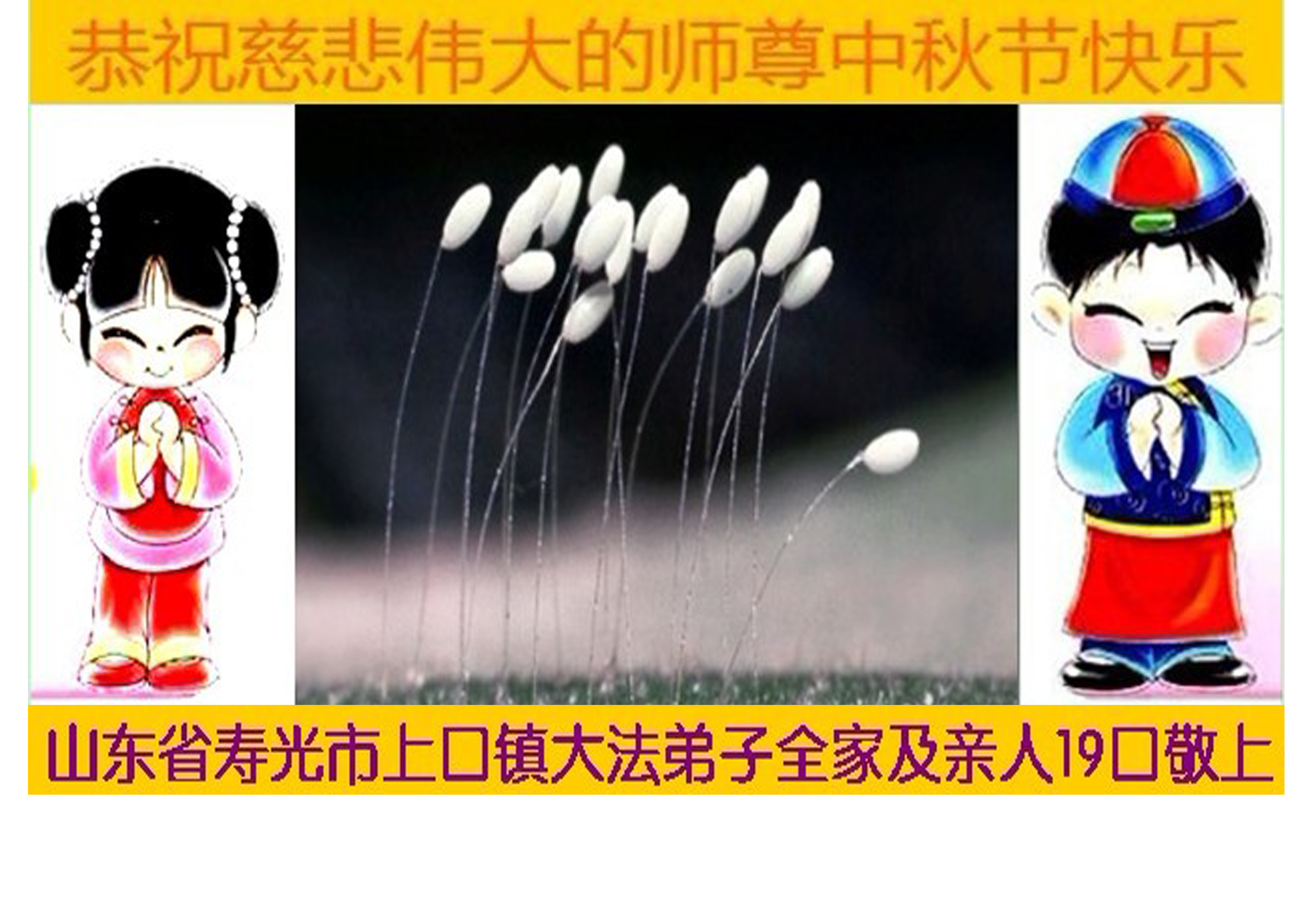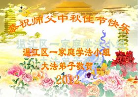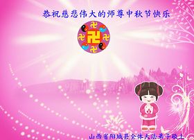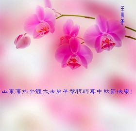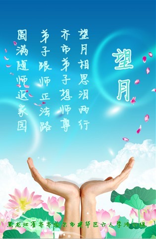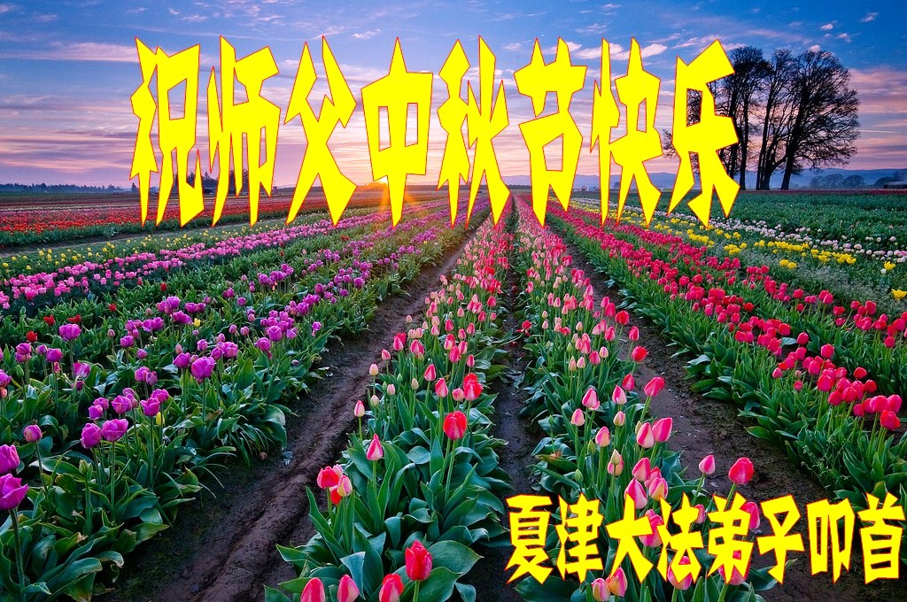 师尊好!又是一年的中秋佳节,我们非常想念师尊!祝师尊中秋节快乐!能成为大法弟子,我们感到非常荣耀和幸福。正法洪势突飞猛進,我们大法弟子不忘自己的使命,每天讲真相救众生,努力做好三件事。彼此沟通、互相配合、共同精進,圆满随师还。