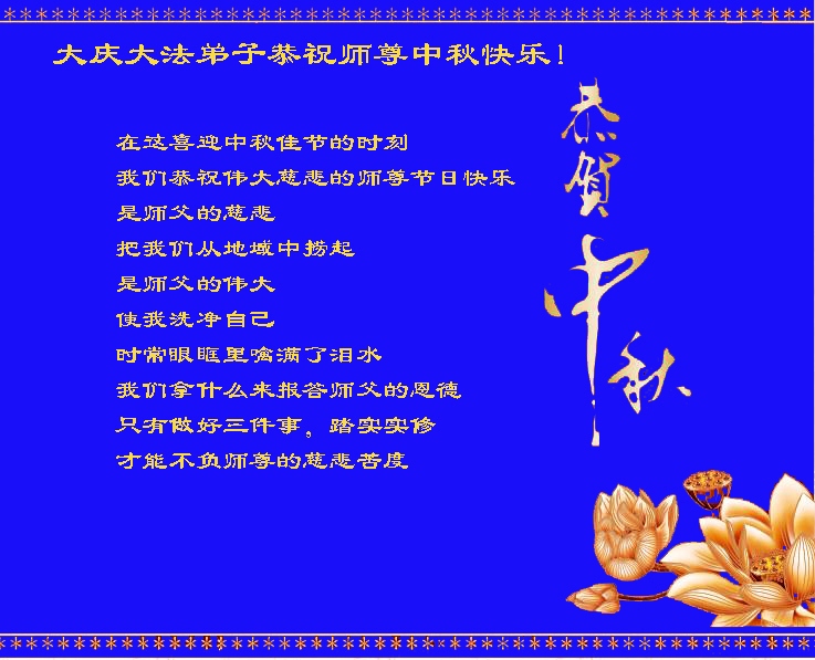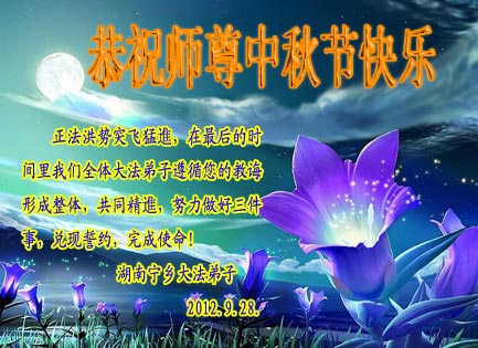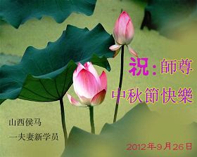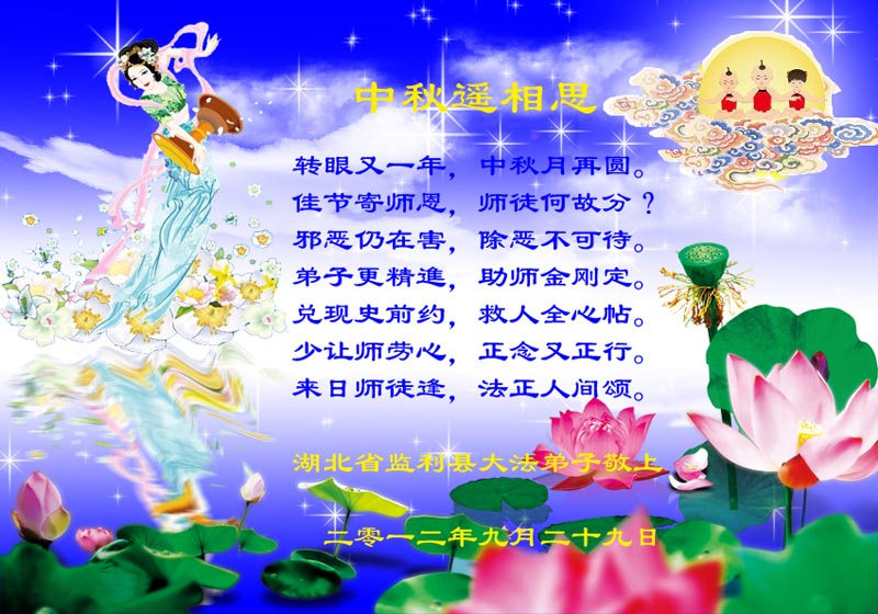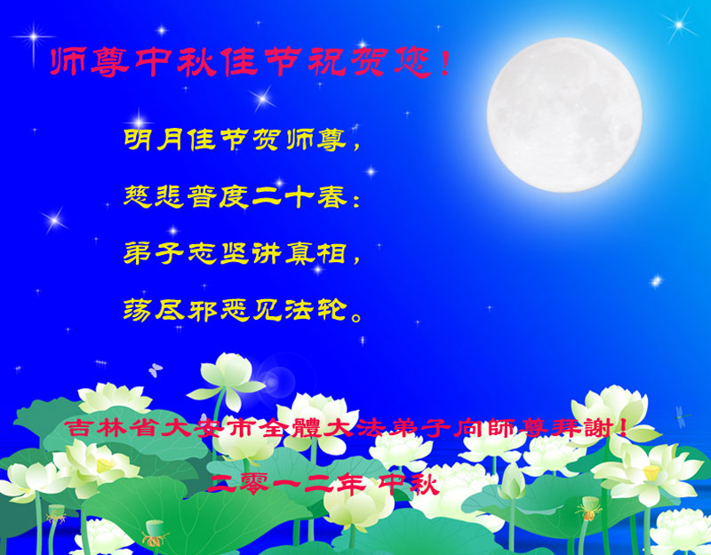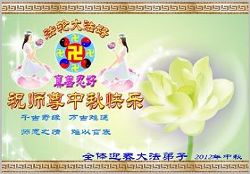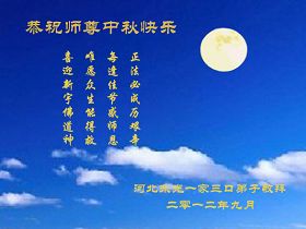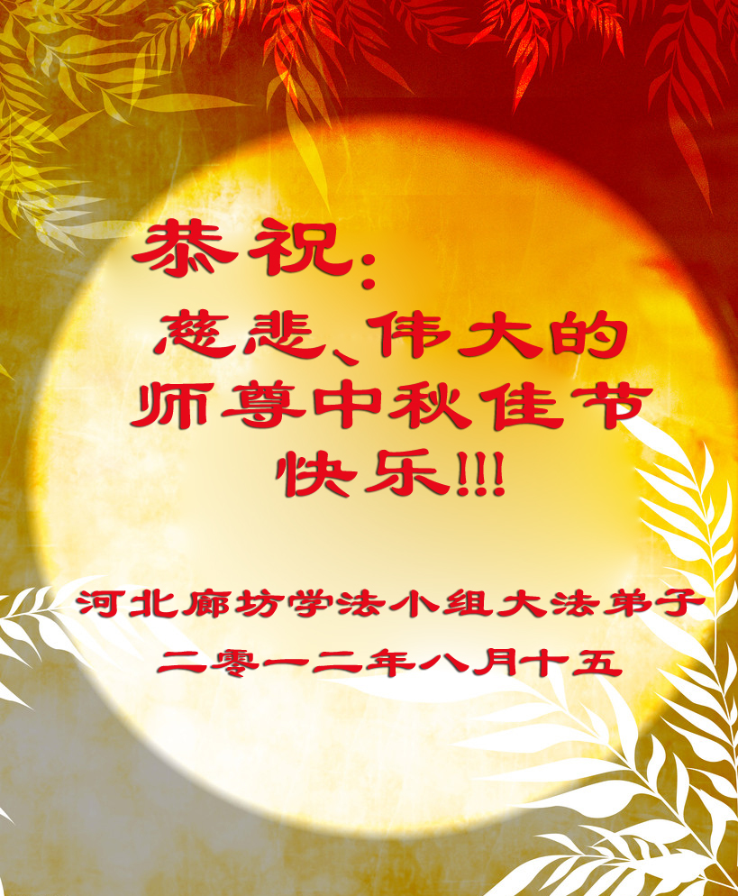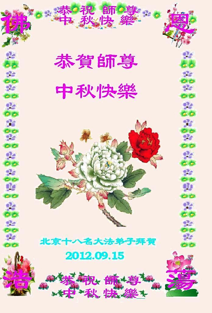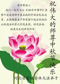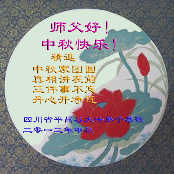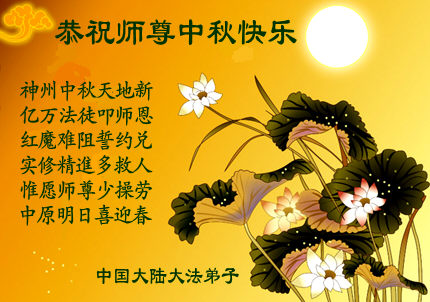 <英文版: http://en.minghui.org/html/articles/2012/10/1/135660.html>中国大陆各行业大法弟子恭祝师尊中秋好