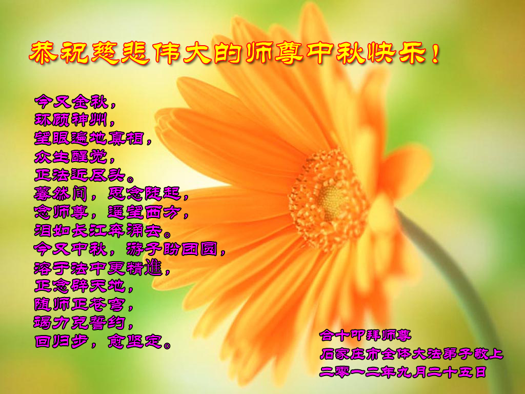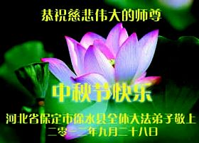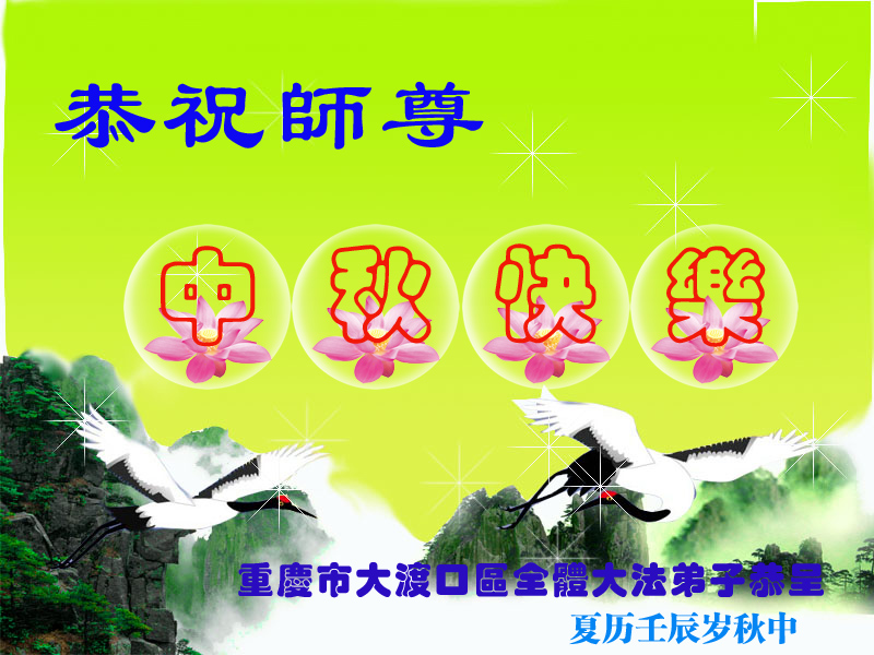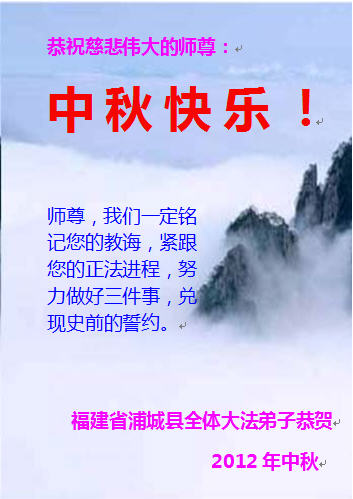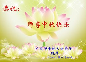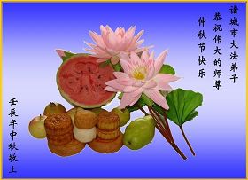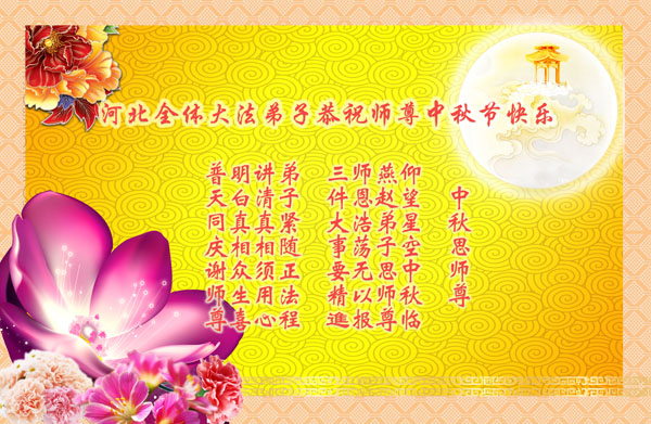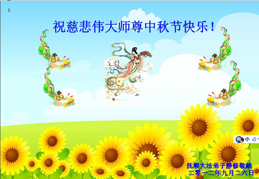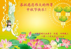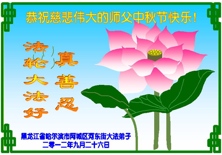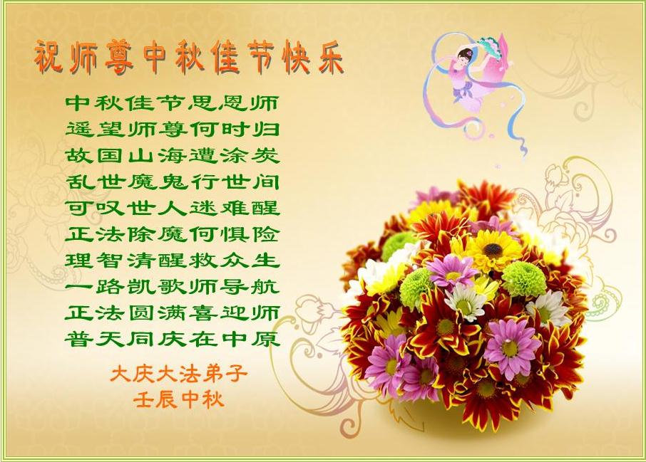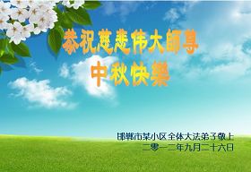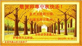 <英文版: http://en.minghui.org/html/articles/2012/10/1/135660.html>中国大陆各行业大法弟子恭祝师尊中秋好
