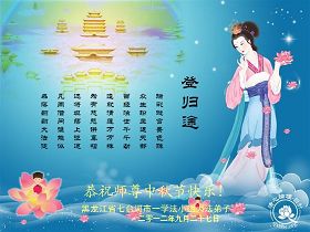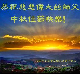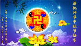 又到了中秋佳节,在这寰宇众生共盼共庆与师尊大团圆的中秋佳节之际,我们全体大法弟子合十叩拜:恭祝师尊中秋佳节快乐!为了寰宇众生的得度,您呕心沥血力挽狂澜的操劳,您辛苦了!