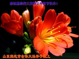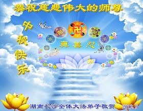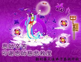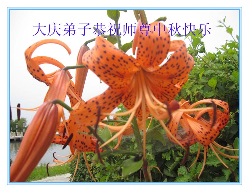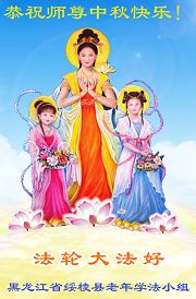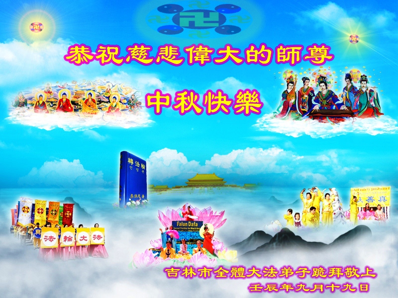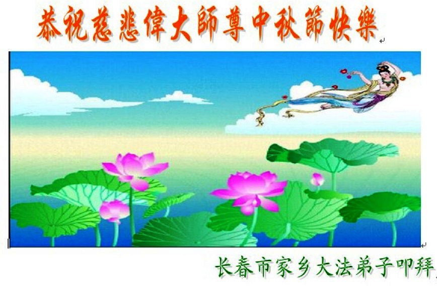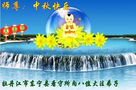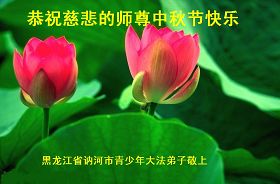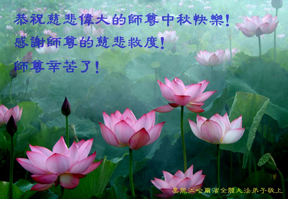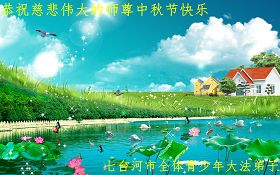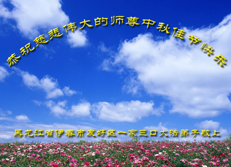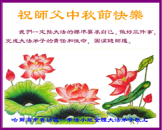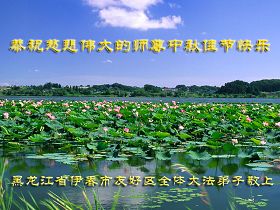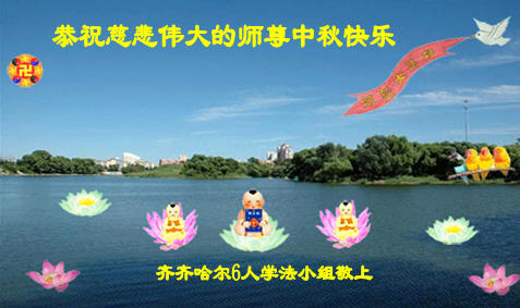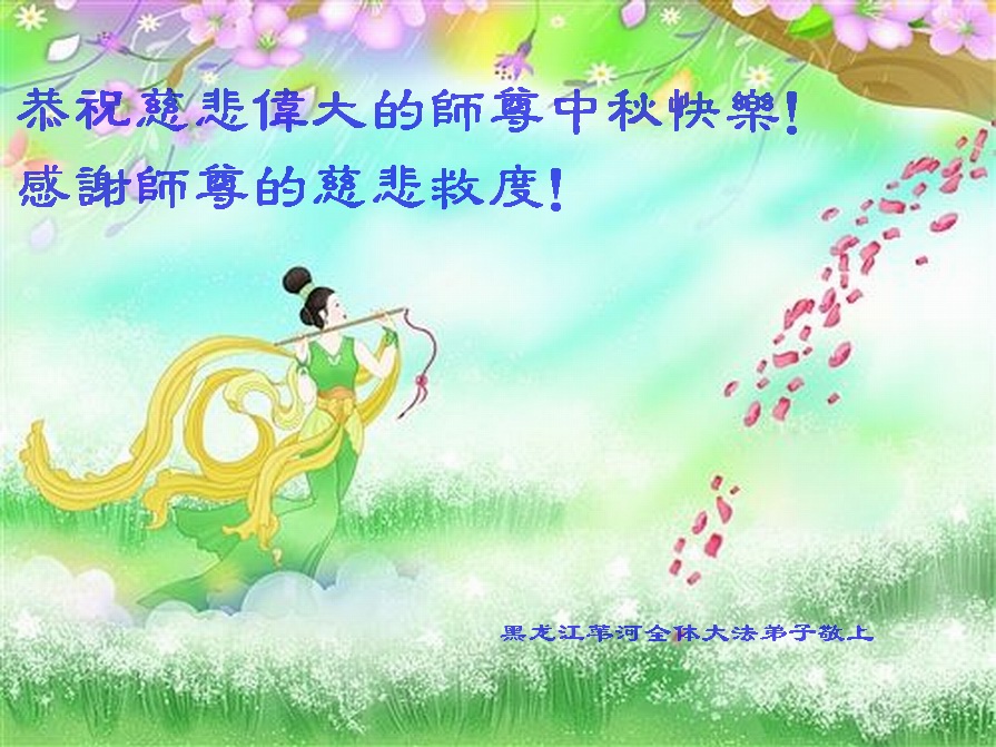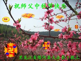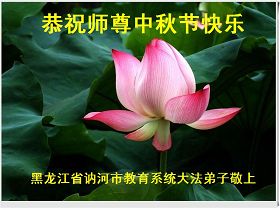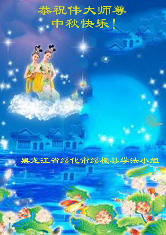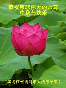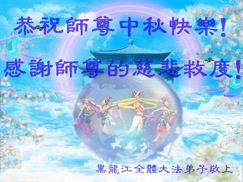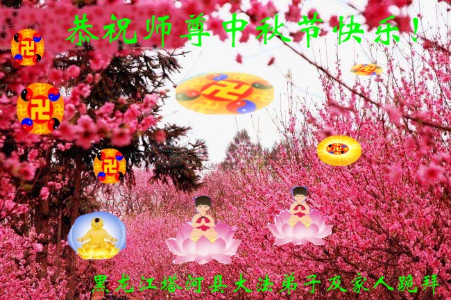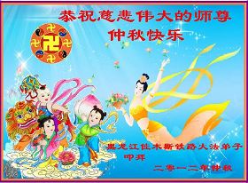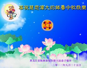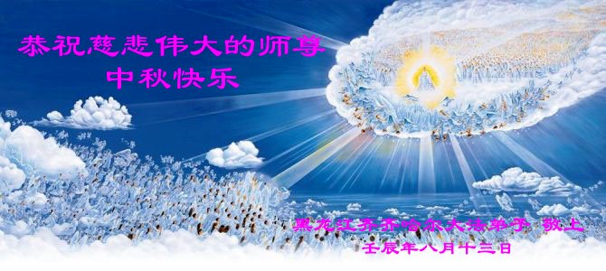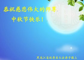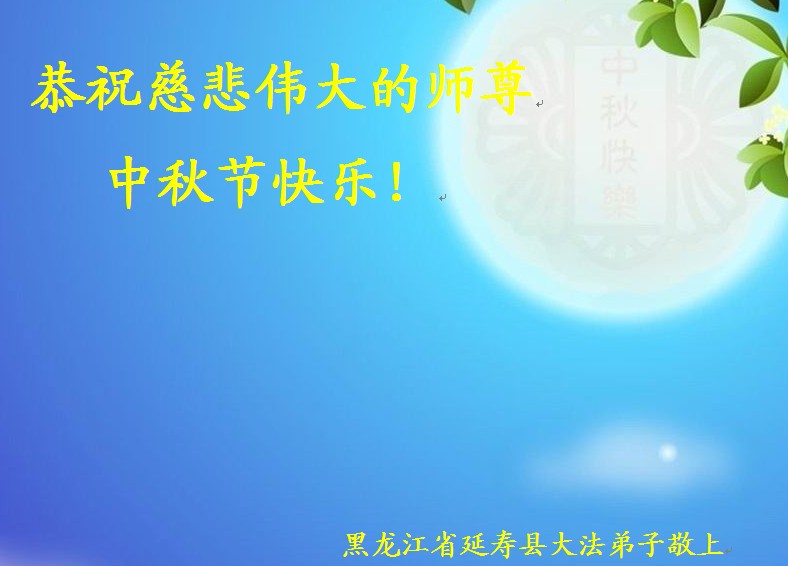 方正林业局全体大法弟子向师尊问好:在这一年一度的中秋佳节即将到来之际,我们方正林业局高楞地区全体大法弟子,遥祝慈悲伟大的师尊中秋快乐!师尊您好!师尊您辛苦了!