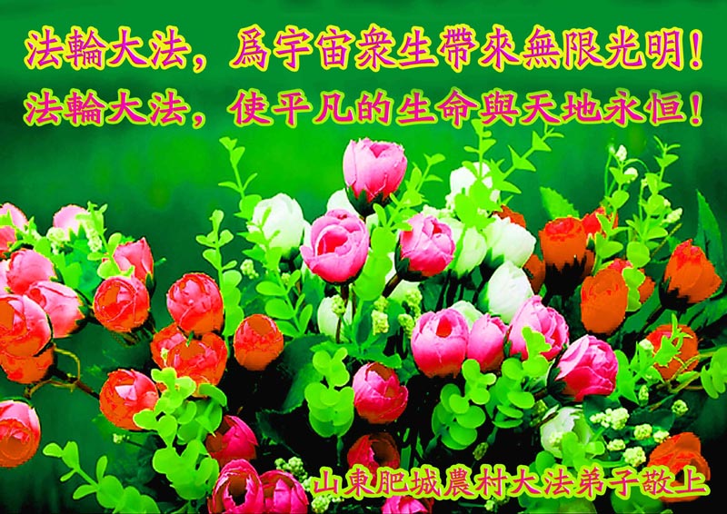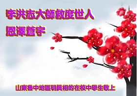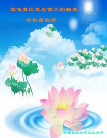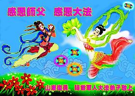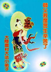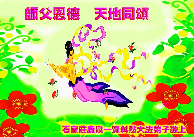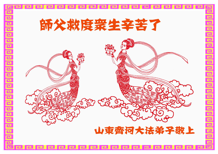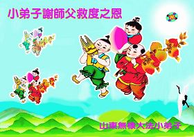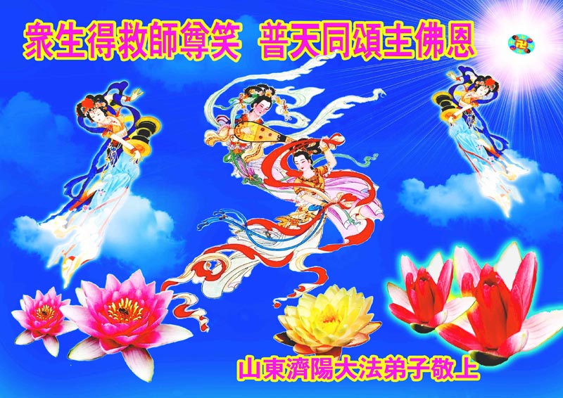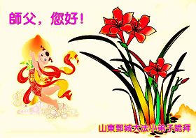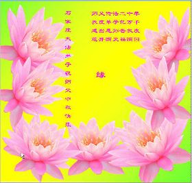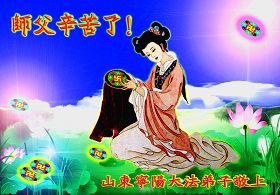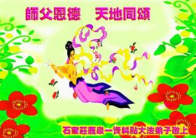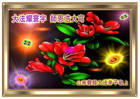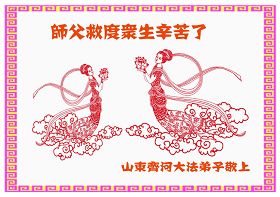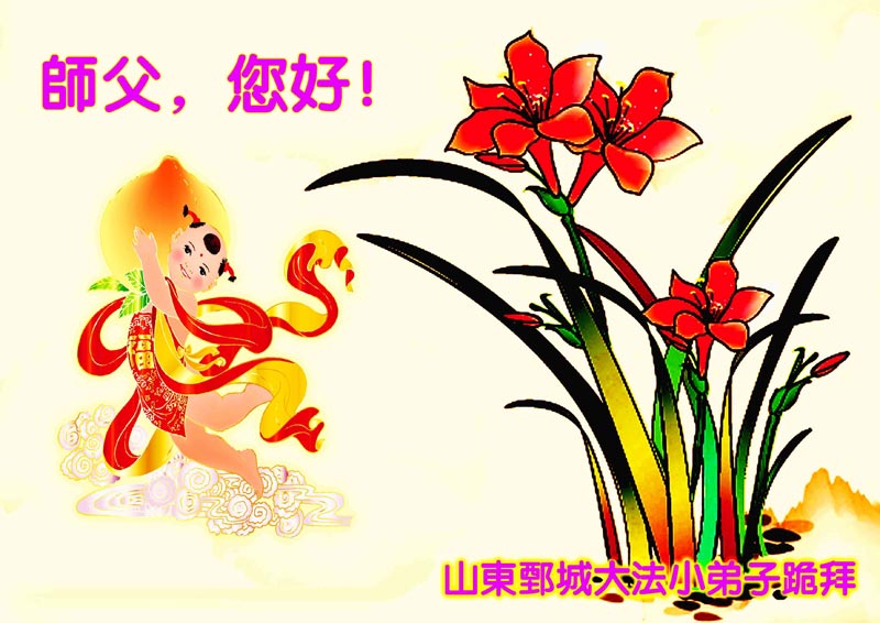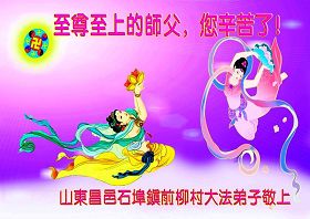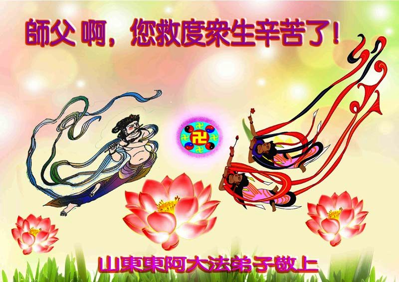 弟子们想念师父!请师尊放心,弟子一定修好自己,决不辜负师父慈悲救度,坚信大法,做好三件事。同时我家孩子及妻子都认同大法,平时也为大法做一些事情。早日盼师父归来、团聚!想念师父!