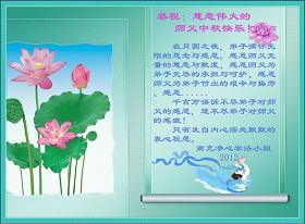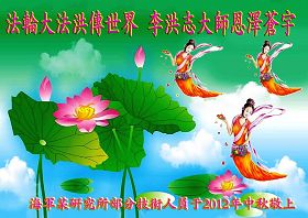 【明慧网二零一二年九月三十日】法轮大法弟子遍布社会各行各业,在各自的职业中,重德敬业,为社会真诚奉献。值此中秋佳节之际,中国大陆各行业的大法弟子纷纷寄来贺卡贺词,恭祝慈悲伟大的师尊中秋快乐。