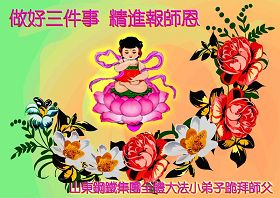 请师父放心,我们一定按照师父的要求做好三件事,抓紧实修自己,形成强大的整体,救度更多的众生,完成我们的历史使命。