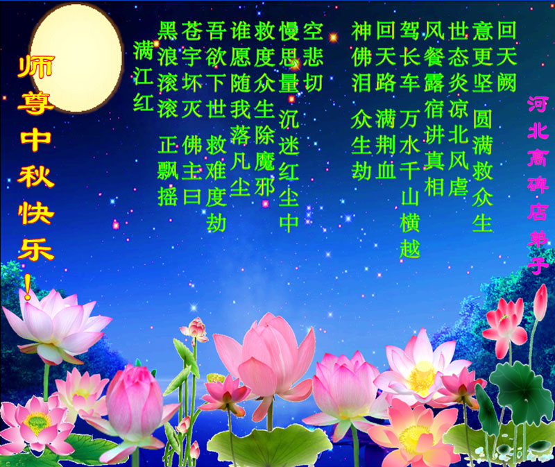 恭祝慈悲伟大的师尊中秋节快乐!弟子们想念您!
