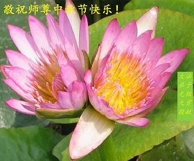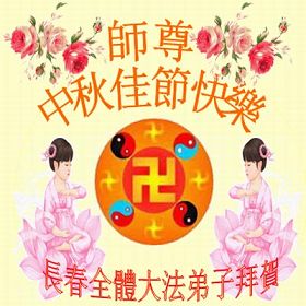 师尊:弟子们想念您!在中秋佳节来临之际,弟子们隔岸叩谢师恩!请师尊放心,弟子们决不辜负师尊的慈悲苦度,共同精進,兑现救度众生的誓约!