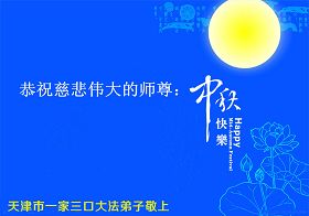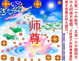 中秋佳节到来之际,中国大陆电力系统大法弟子非常想念师尊,弟子叩拜师尊,师尊您辛苦了。祝师尊中秋佳节快乐!