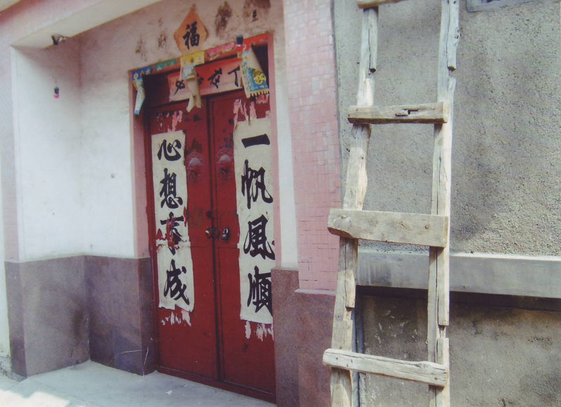 二零零九年三月十七日,杜祥忠的妻子公凤英在县城租房处和邻居聊天,突然听到外面人声嘈杂,邻居说:“我没锁门,得赶紧回家,咱院里经常来贼。”公凤英送邻居走时,一敞开大门看见梯子竖在大门南边(见下图),一群便衣站在门外。公凤英赶紧关门,便衣们强行推门而入。县“六一零”小头目方思民已爬梯子蹑手蹑脚的爬上南平房,一看门开了,赶紧溜下来闯入杜祥忠家。