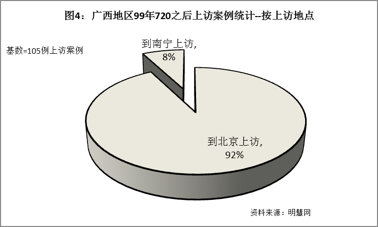![]() 图4统计结果表明,在这些上访案例中,92%都是到北京上访的。 |