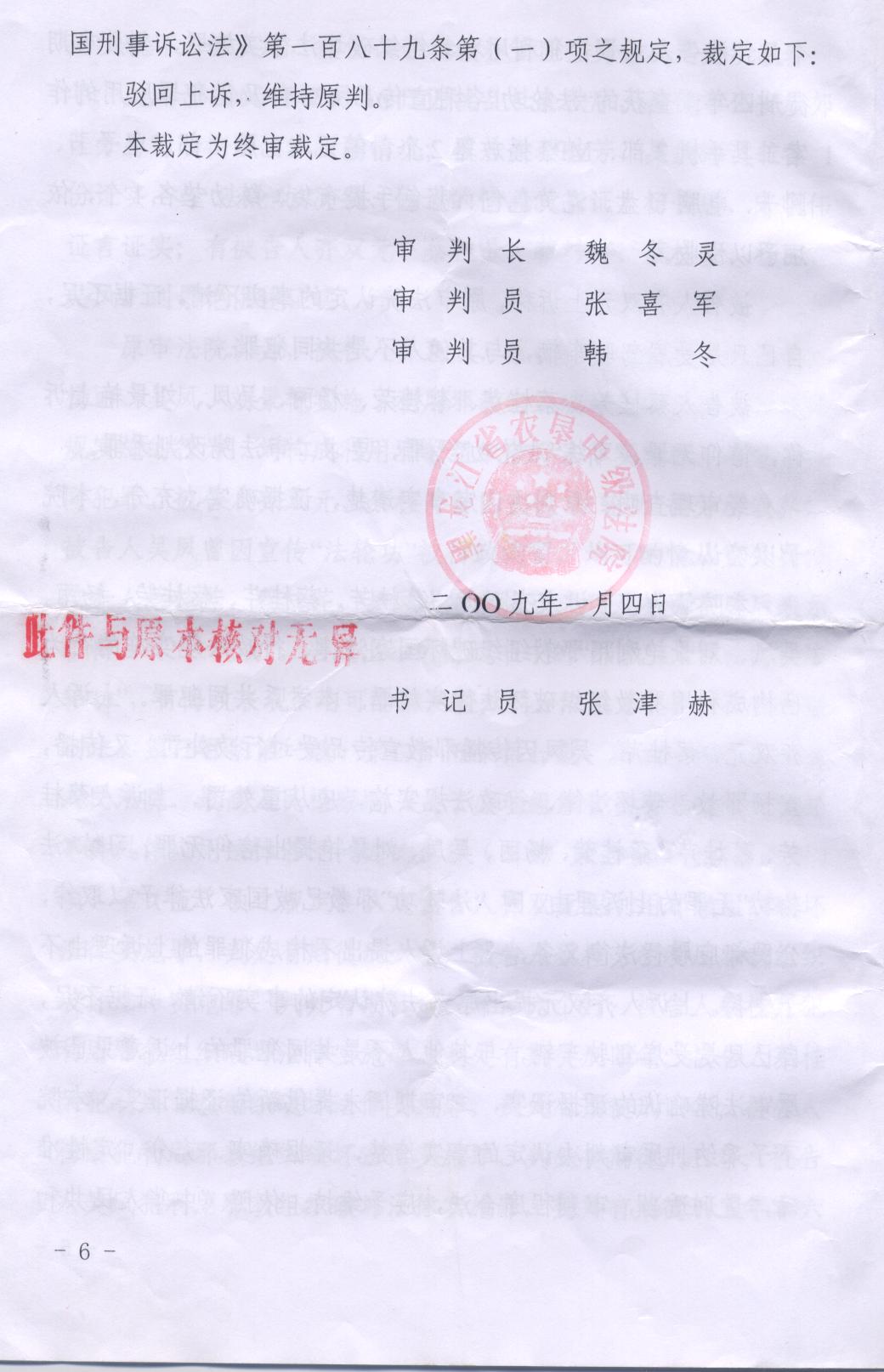 依法对照,自己无罪,七人均提出上诉。二零零九年一月,黑龙江省农垦中级法院非法维持原判。