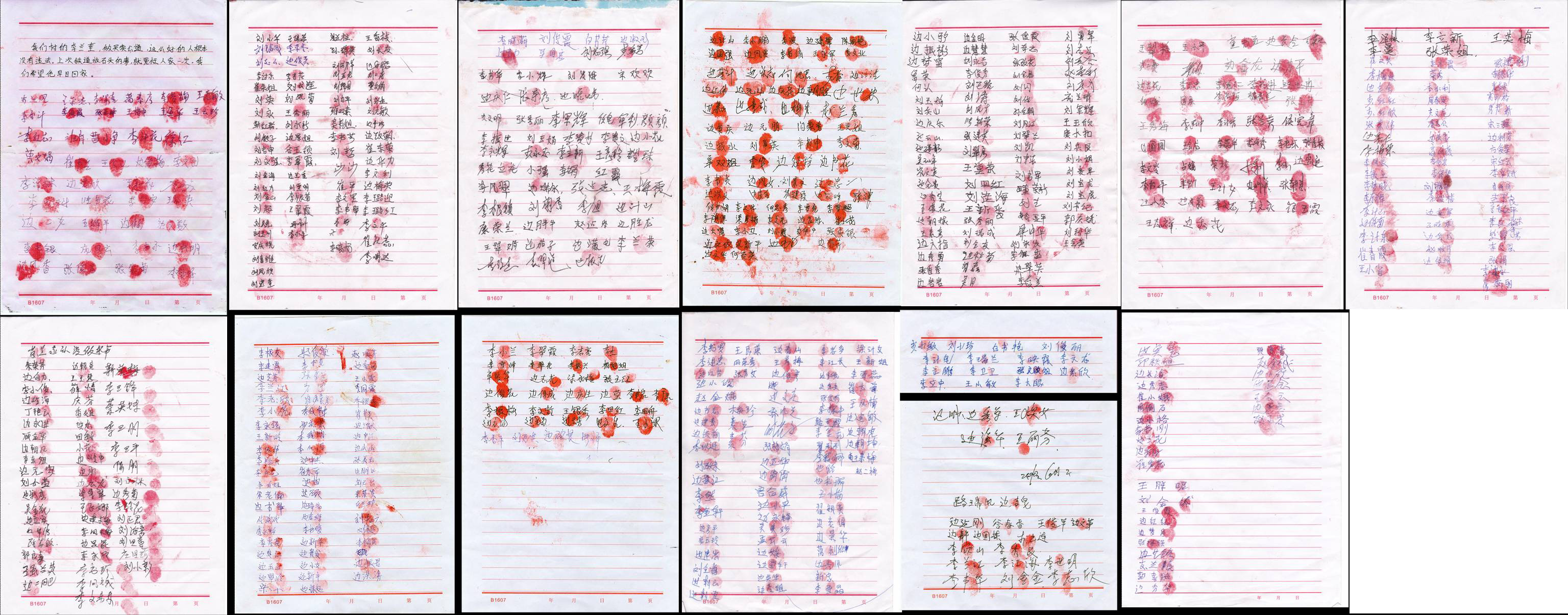 大规模民众联名上书这样的事件在中国越来越多,去年五月二十九日,河北唐海县五百六十二位村民按手印,支持释放法轮功学员郑祥星;黑龙江则有一万五千民众为素不相识的法轮功学员挺身而出,站出来支持当地替父鸣冤的秦荣倩,在她的《喊冤昭雪书》上签名并按上大红手印。秦荣倩的父亲秦月明,因坚持信仰法轮功而被当局关在监狱中酷刑折磨致死。