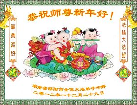 值此新年佳节来临之际,郸城县全体法轮功学员向辛勤操劳一年的父老兄弟姐妹拜年啦!为了家乡父老乡亲的永远安康,我们特发此信,把法轮大法的美好告诉大家,把福音和吉祥送给大家。