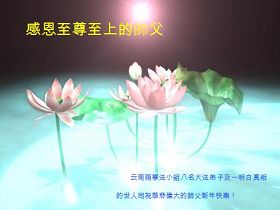 每逢佳节,都能看到那一张张制作精美的贺卡发往明慧,向师尊恭贺!那一篇篇短文、一首首诗句把弟子的心意向师尊表达的淋漓尽致。而我们不会做贺卡、不会写诗句。但我们同样沐浴在佛恩浩荡中。在师尊的慈悲呵护下,一定努力做好我们该做的。