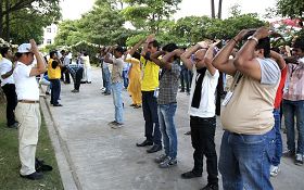 十九日清早,在警察部队的警察们已列队等候天国乐团,当乐团以浑厚的乐音吹奏入场时,警察们全都专注地观看。印度学员也向在场警察们介绍法轮大法的美好,以及发生在中国大陆的迫害真相,收到真相传单的警察们立刻认真阅读,并且学习法轮功。