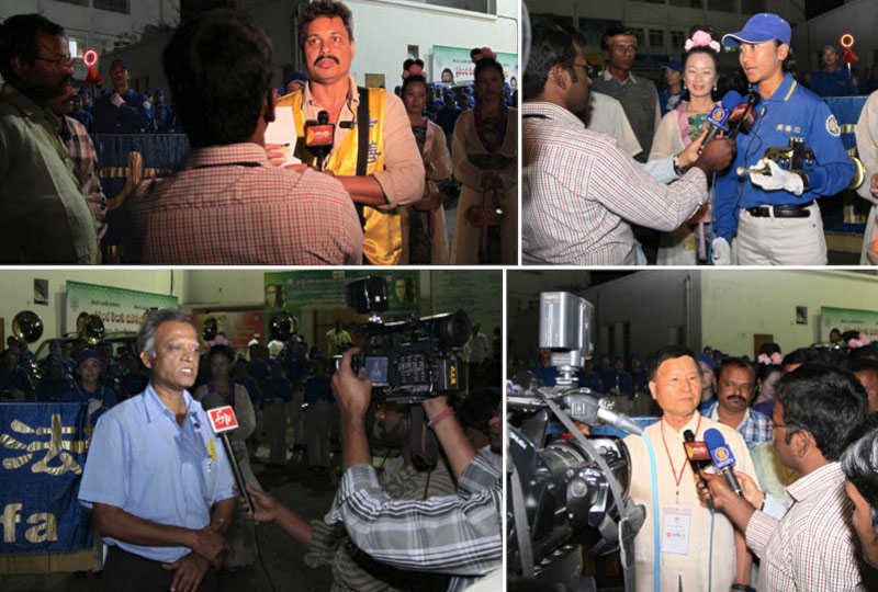 海得拉巴市有数种不同语言的报纸,都连续数日以大篇幅报导天国乐团的新闻。当地电视台也每天跟拍,并采访了印度学员与台湾学员,让电视机前的一亿多名观众知道,为何有这么多人修炼法轮功,并到印度来告诉大家法轮功的美好,以及天国乐团是因为修炼大法才能吹奏出充满“真、善、忍”的动人乐音。