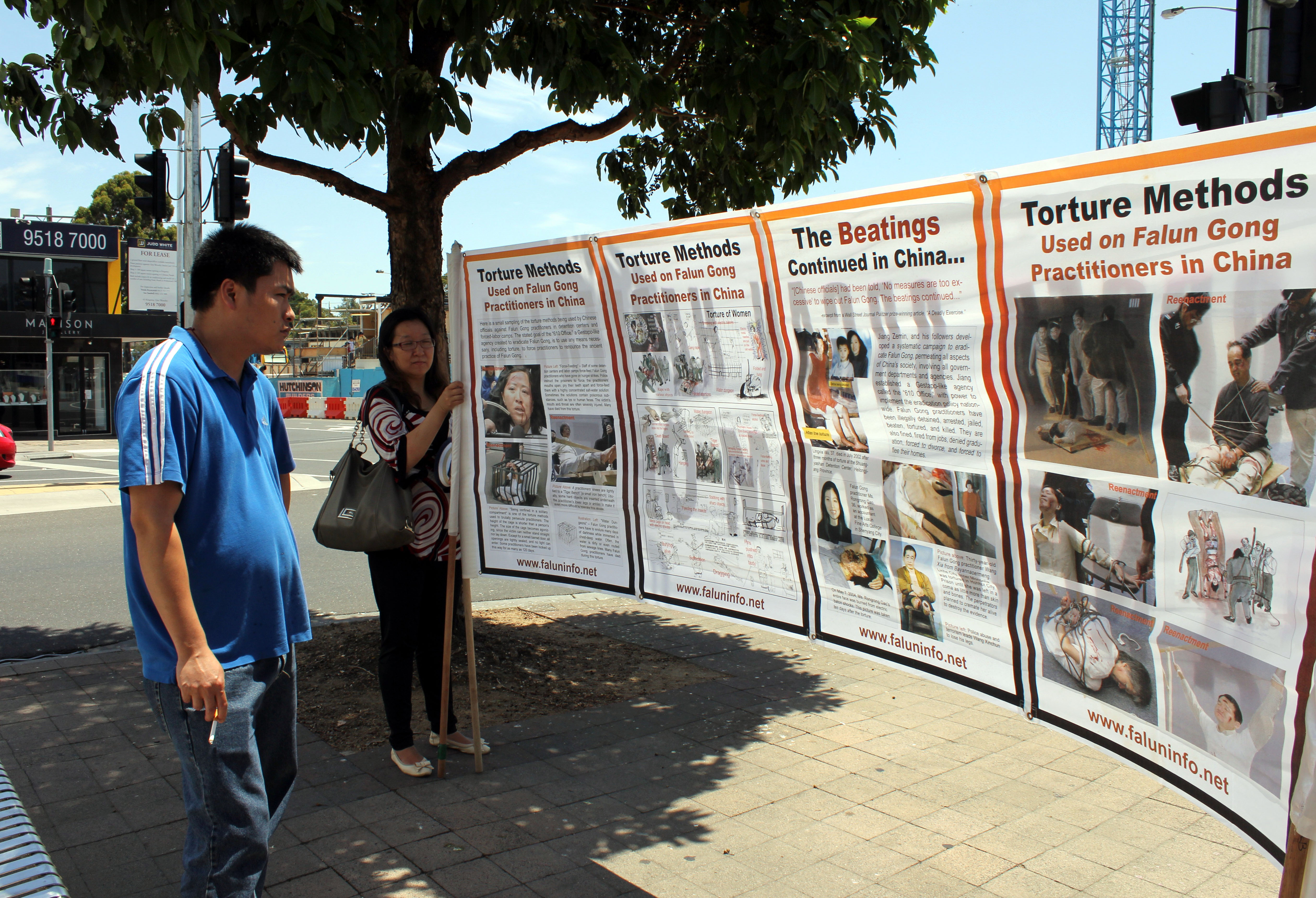 法轮功学员在墨尔本格兰韦弗利区购物中心的主要干道旁,呼吁民众关注并制止中共暴行。