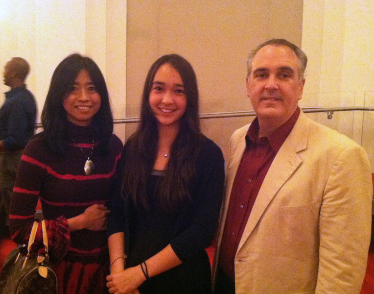 图6:美国国务院管理官员艾里克•克兰普(Eric Kramp)和太太及女儿星期五晚在肯尼迪中心观看了神韵交响乐团音乐会。四位不同风格的指挥家给克兰普先生留下深刻印象。
