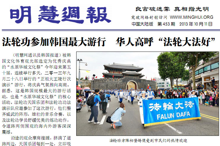 法轮功参加韩国最大游行 华人高呼“法轮大法好”