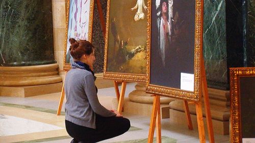 四位结伴而来的女孩儿观赏画展后表示这些画非常美丽,画中法轮功学员遭到迫害的画面让人深感悲伤。短短两周时间内,数以百计的民众前来参观画展,很多人在留言簿上写下自己的心声。