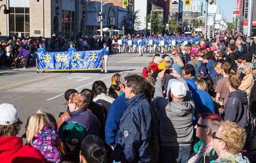 这一天秋高气爽,阳光明媚,来自加拿大和美国的获奖乐队、五彩缤纷的彩车,身着巴伐利亚民族服饰、载歌载舞的乡村姑娘,还有不少其它族裔的方阵,鼓乐齐鸣、热闹非凡,近二十万来自北美各地的热情观众在现场帝王大道形成了长达五公里的壮观街景,游行历时两小时,CTV(加拿大电视台)现场向全国播放,据媒体报道,观看游行的电视观众达一百八十万。
